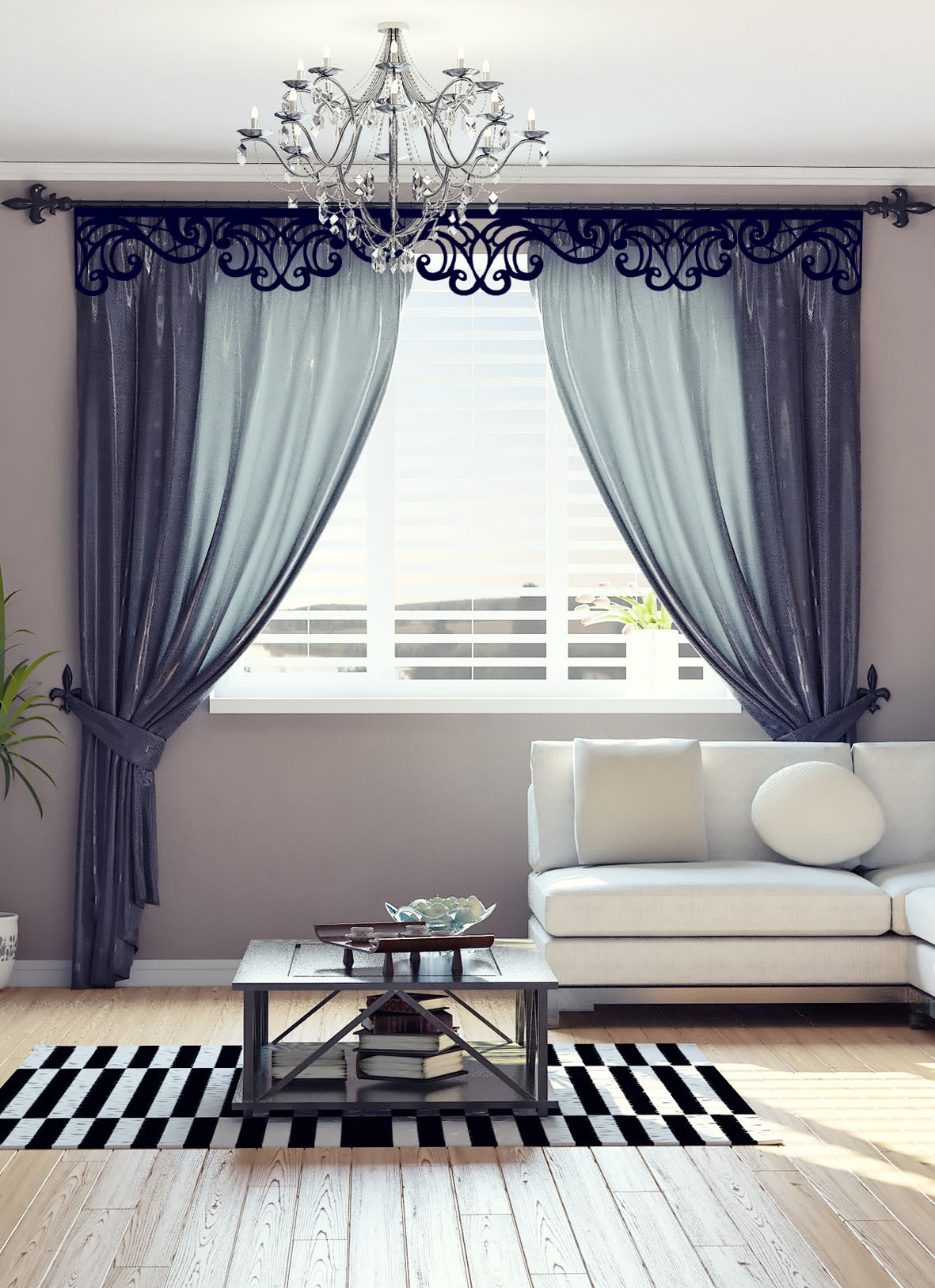 1. Various mounts for curtains. Hidden fittings should be chosen if there is a need to mask the mounting points of the curtains.