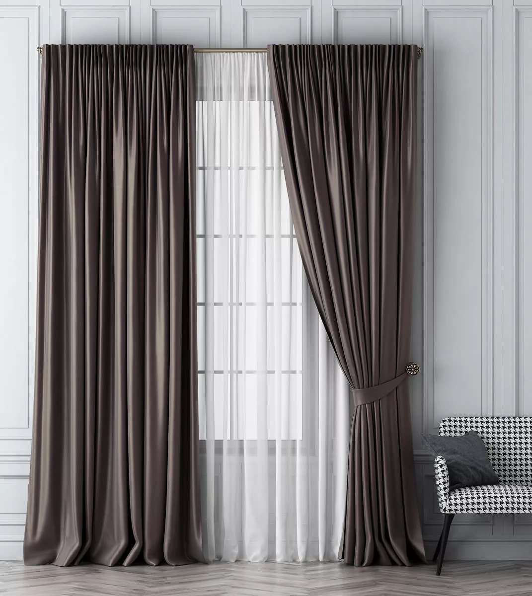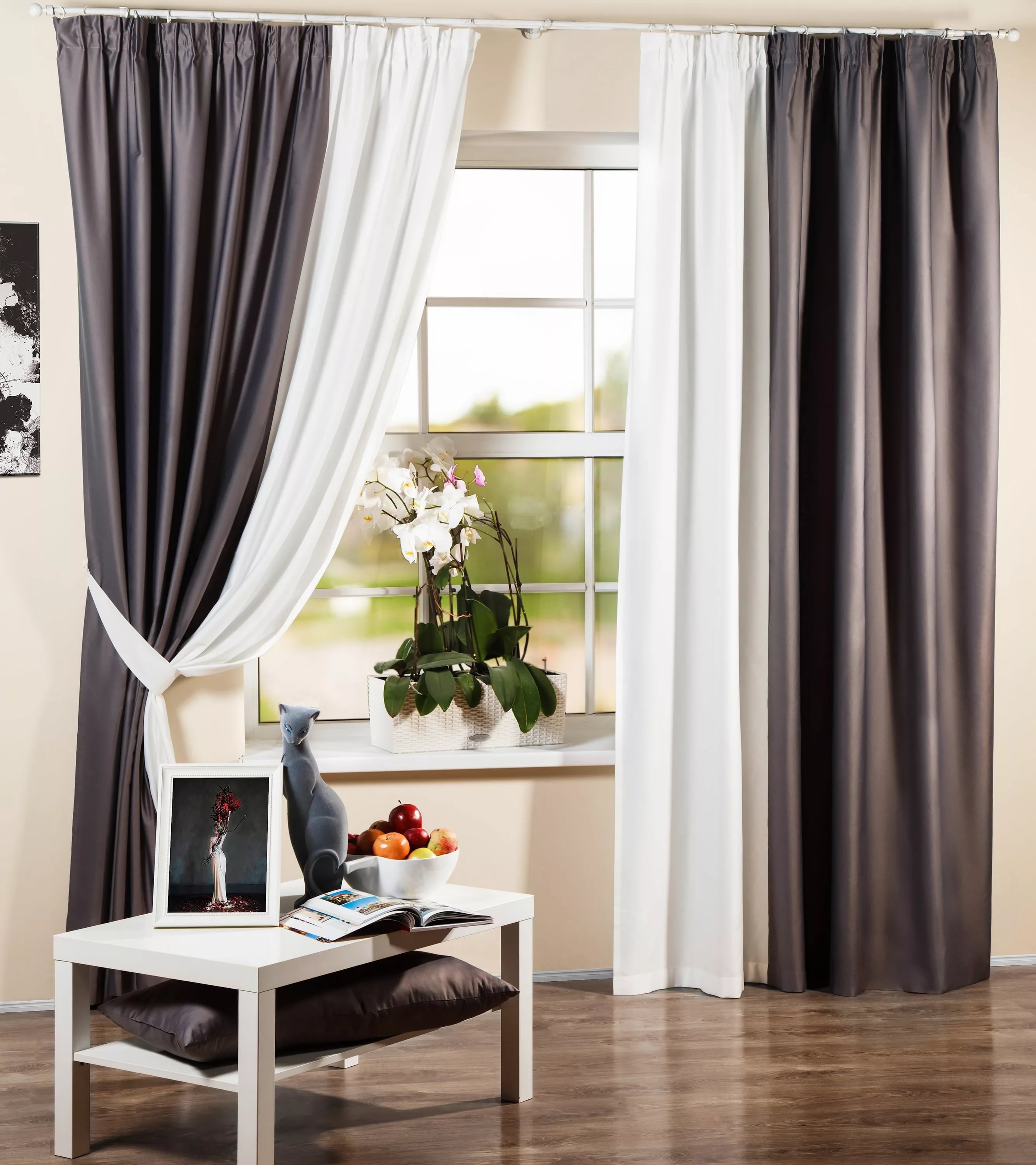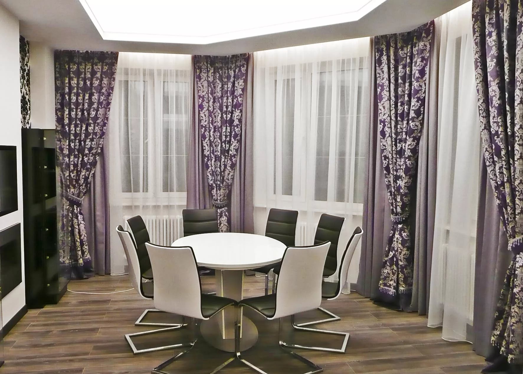 Draperies are a dense fabric. This option can be combined with light curtains or roller blinds.