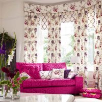 4. Bright accent.The window can be made the main element of the interior, if you choose a bright design. It is better if the fabric is not plain and will be combined with other textiles and accessories.