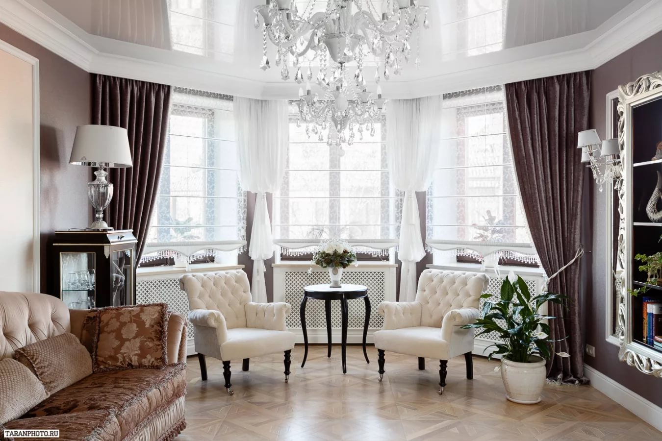 Layering and complex shapes, an abundance of beautiful decorative elements - the classic style allows lovers of lush curtains to roam ideas. Classic is something that never goes out of fashion, and therefore it is almost impossible to lose with the choice. Thick and heavy material is worth choosing, the curtain is made of light and airy fabrics (organza, tulle, veil).