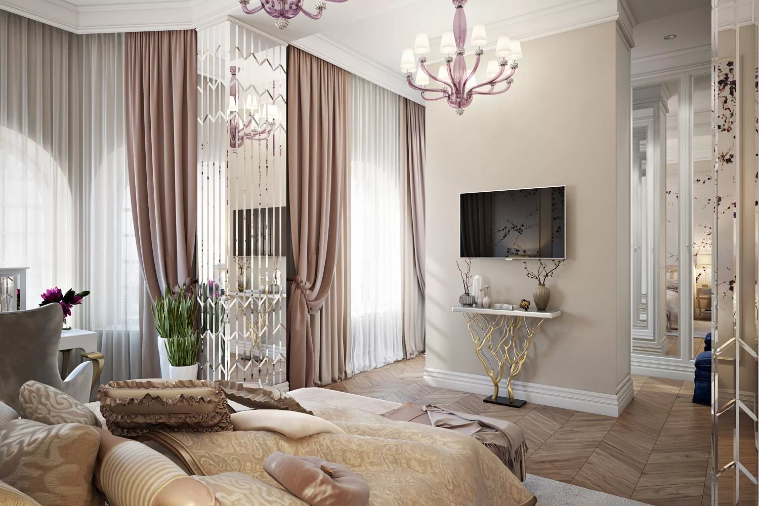 French motifs are always about lightness, tenderness and sophisticated taste. A large number of folds creates the illusion of a flowing waterfall. Such an instance will always look expensive and of high quality.