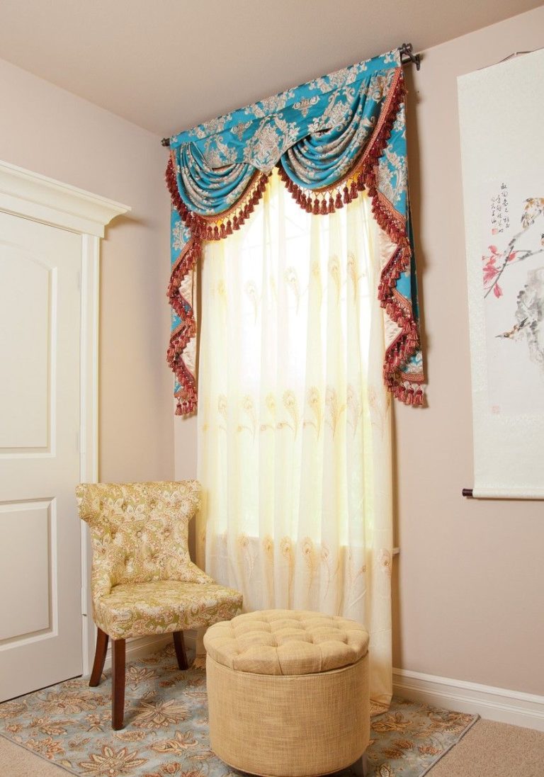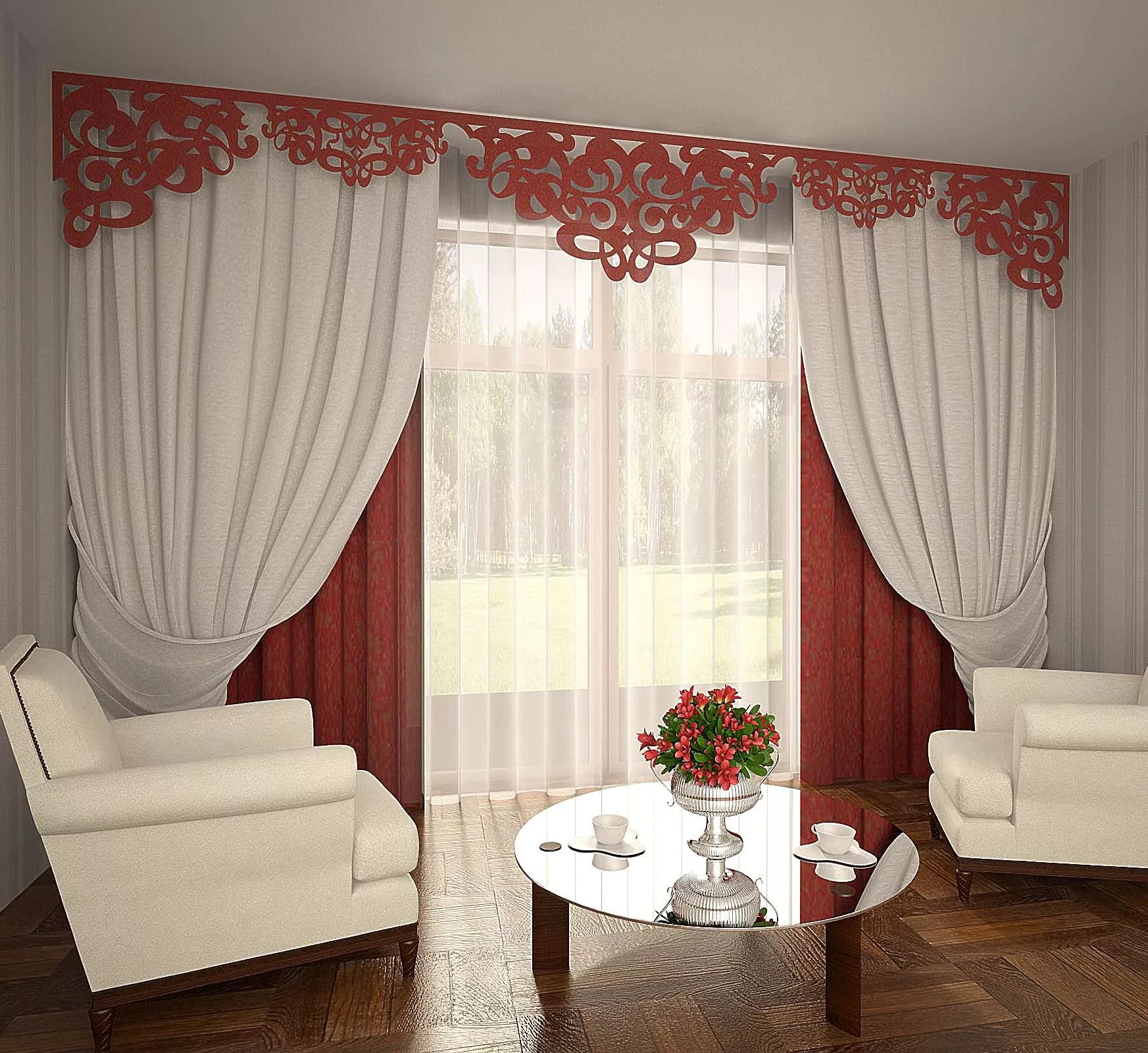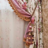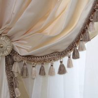 2. Exceptionally decorative functions are performed by all kinds of additions: lambrequins, fringe, beads, ribbons, magnetic jewelry. However, sometimes such elements can also be functional in nature, if they help to adjust the space, appearance and shape of the curtains, mask the eaves.
