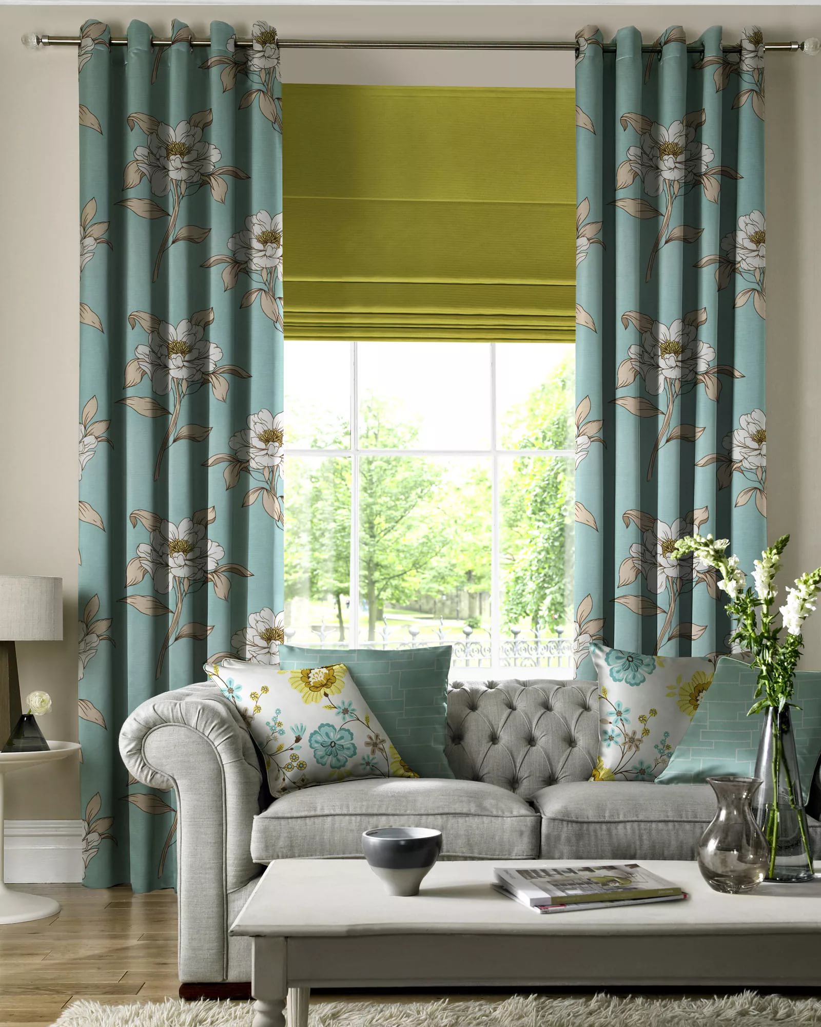 They look like two equal rectangles or squares of fabric, fixed on the ceiling or cornice. The “floor” option will look great on panoramic windows.