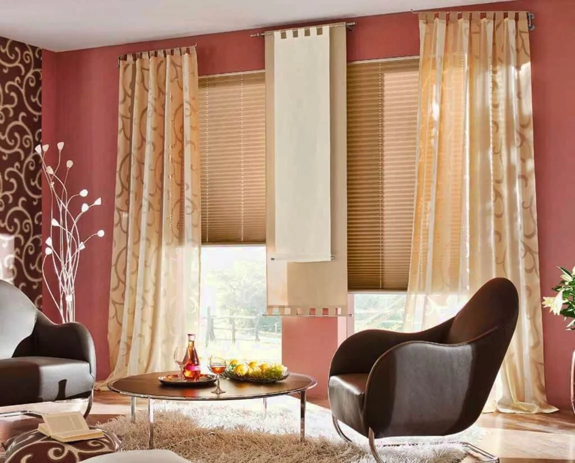 1. In order to save money, the color matching option for the furniture color will be ideal. After all, when changing wallpaper (which change more often than furniture), the curtains can not be replaced.