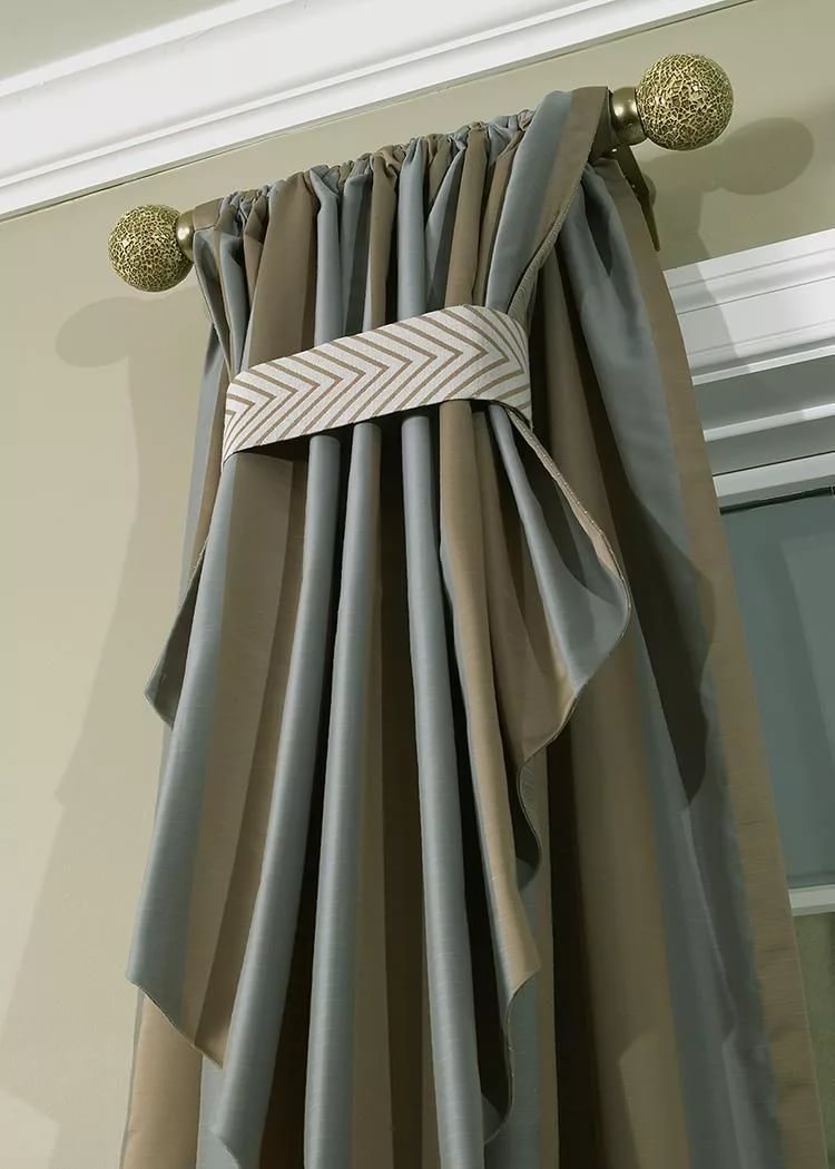 The whole variety of accessories is divided into two groups: accessories for curtains and for curtain rods. Accessories of the first type can be either simply decorative or functional.