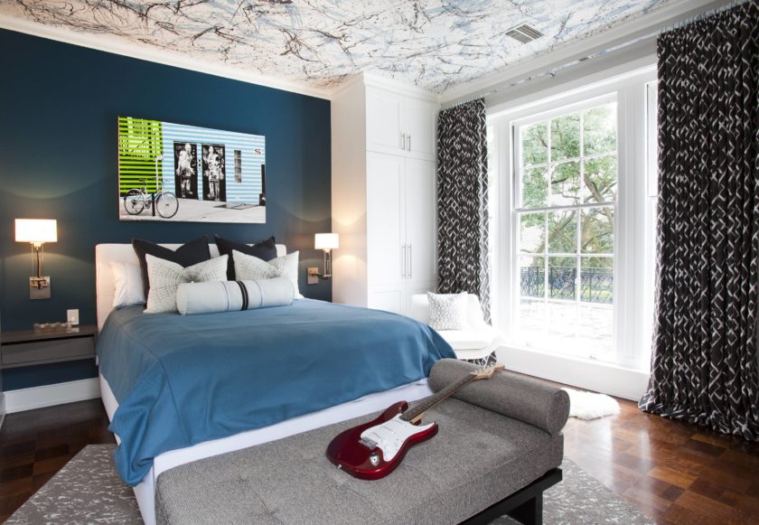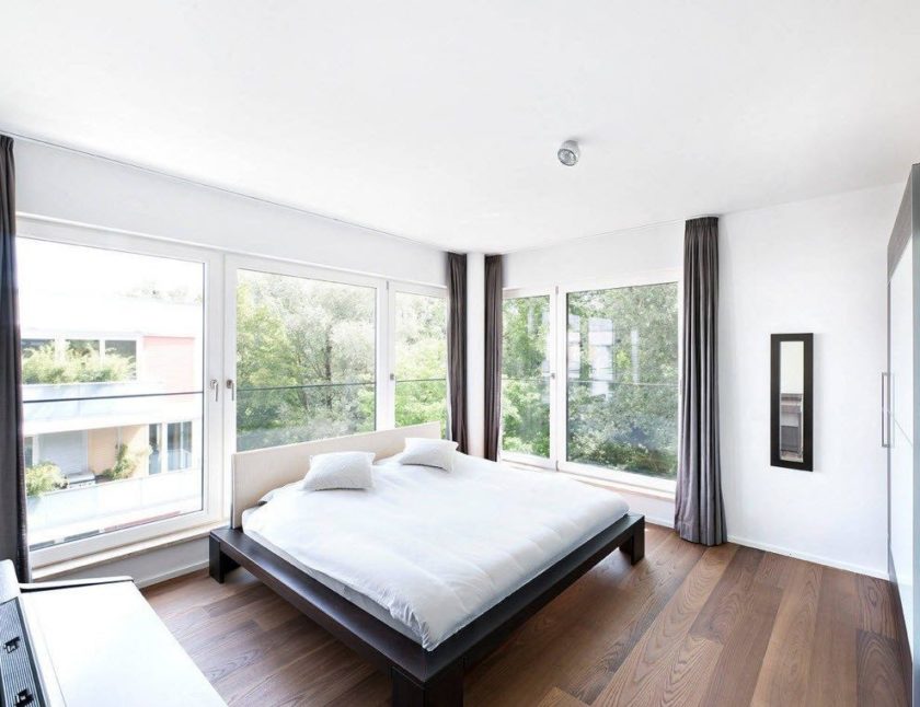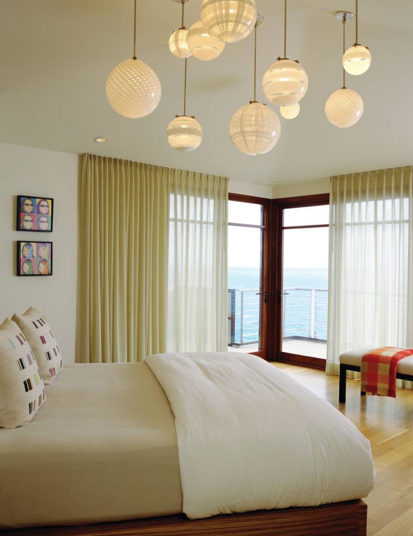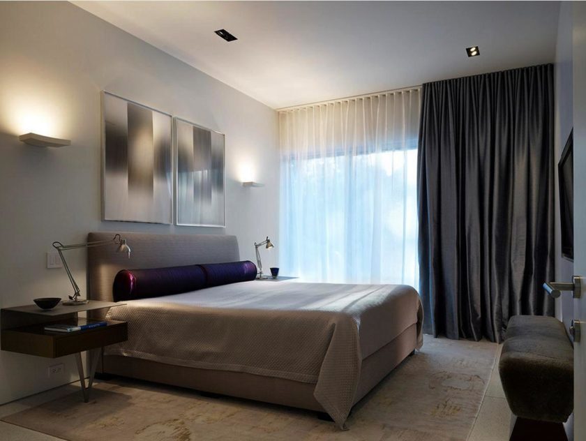 There are a lot of design options for bedroom curtains, as in the photo. They can be: