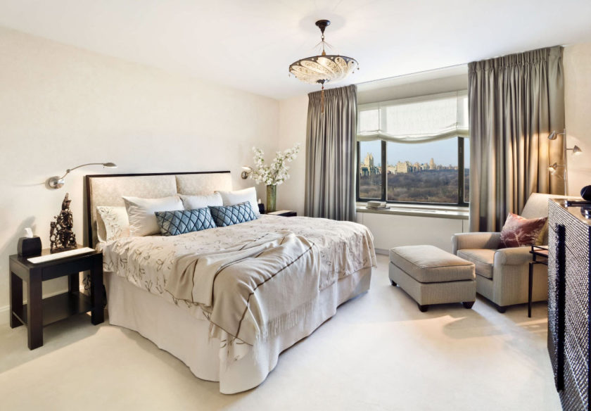 Straight beige curtains work well for classic style bedrooms or for French Provence