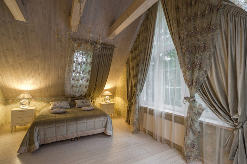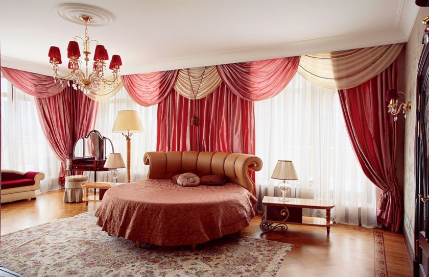 The original design of the curtains will create a unique interior. A room without them looks uncomfortable, uninhabited. A person spends almost a third of his life in the bedroom, go to bed, he should wake up in favorable conditions. Properly furnished, decorated with curtains, the bedrooms look like in the photo. If with independent tailoring, choice, placement there are difficulties, turn to professional designers.