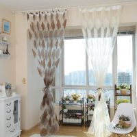 When the room provides access to a balcony, a loggia, one should take into account the size of the room, the stylistic design. The curtain should completely hide the balcony door. If it is often supposed to be kept open, curtain textiles are selected resistant to pollution, especially if the window does not go into the garden, but onto a busy highway. Atlas, cotton, many synthetic fabrics almost do not accumulate dust, they are easily washed in the machine.