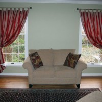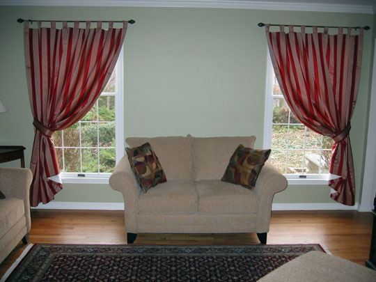 Note: Do not recommend too simple narrow curtains in two stripes, especially with modest drapery. In a room of a large area, they will look incomplete and require some kind of addition.