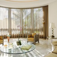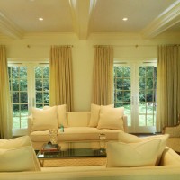 Multilayer, fantasy, richly draped, multi-row and other complex design options for curtains will not look like a foreign body in a large room. Lambrequins, so popular in many houses (and often absolutely inappropriate), in your case will fit perfectly into the height of the window. Moreover, it is not necessary to limit imagination: soft lambrequins, hard ones, and their combination will suit you.