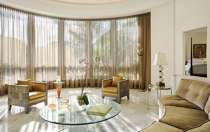 Often, the right fabric, interesting in texture and coloring, is elegant in itself, and even curtains that are simple in shape look quite worthy.