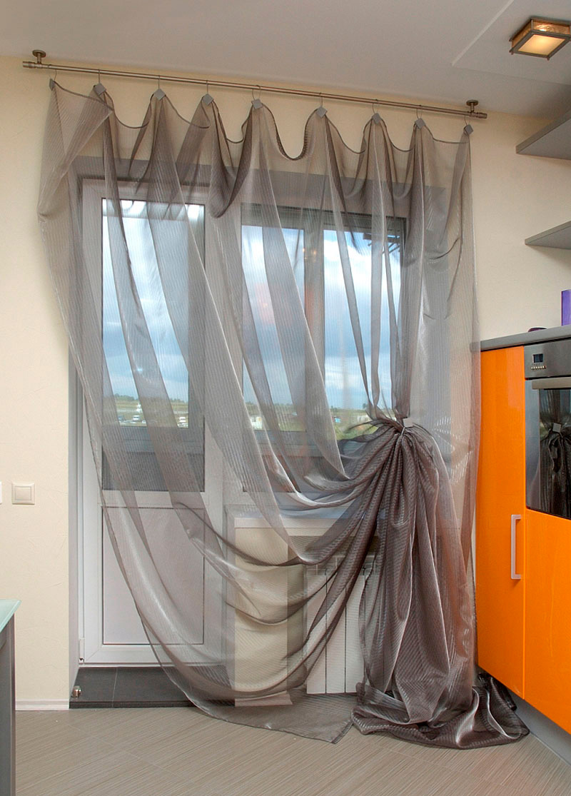 Many designers advise in the kitchen to design a window in gray tones or use a fabric with elements of these colors. Curtains look stylish, but remain practical. The kitchen is a place where food is constantly prepared. Therefore, light colors quickly get dirty and lose their former attractiveness. But gray items can be beautiful for a long time.