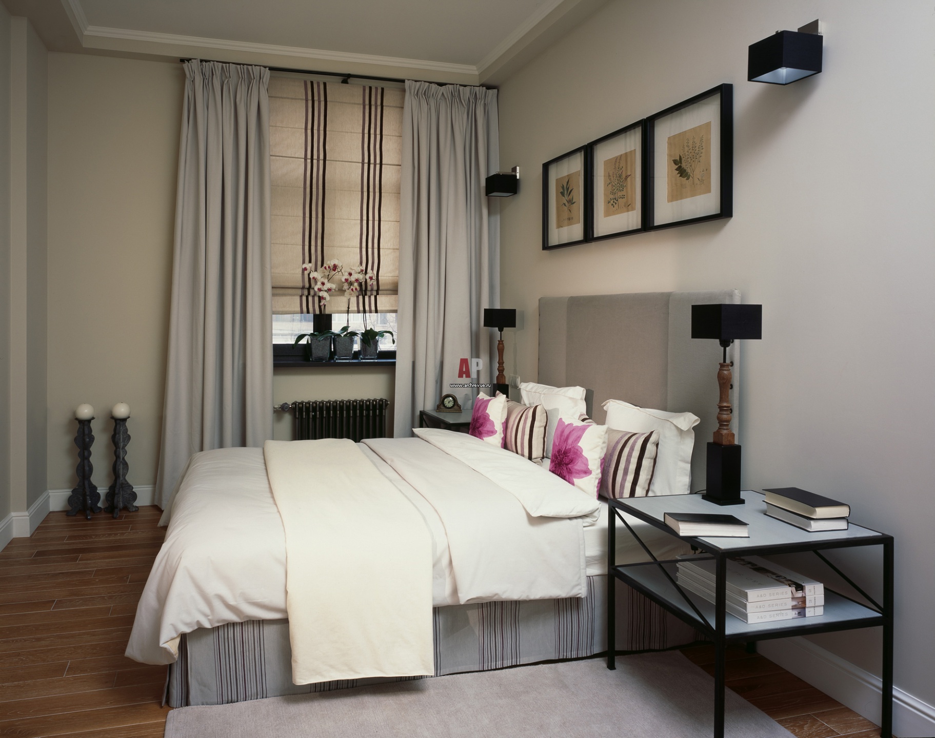 Light colors are great for the bedroom. They are suitable for white flowers, pink, beige. They need to be warm and not bright. Better choose plain curtains. They will complement the overall style and will not attract attention.