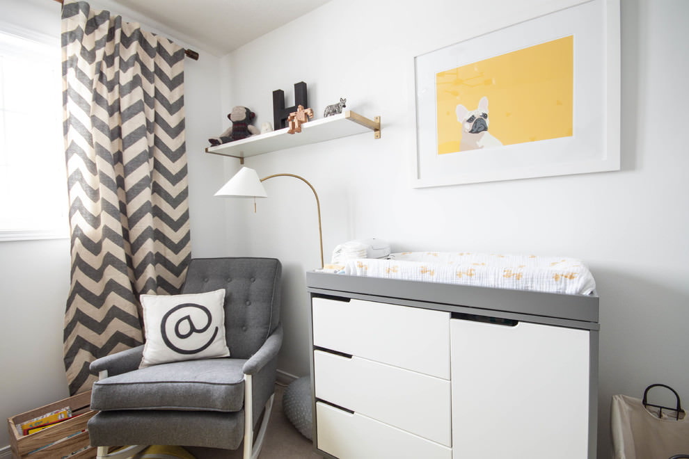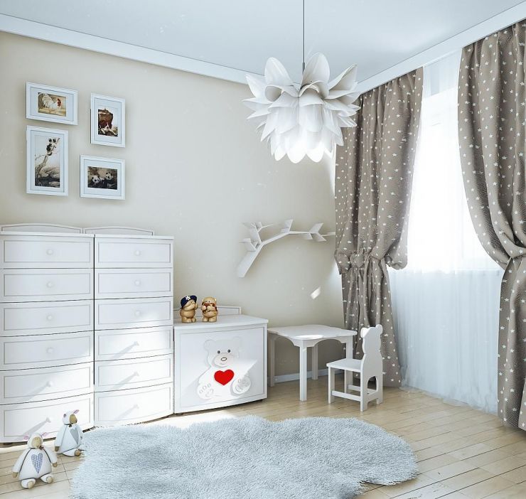 | Contrast compounds | The game of contrasts is not suitable for any room. Ideal rooms for this option is a nursery, playroom or relaxation area. Gray will act as a universal option, not shifting the emphasis from the key idea and terrier. It will become a calm addition, allowing you to associate the colors used |