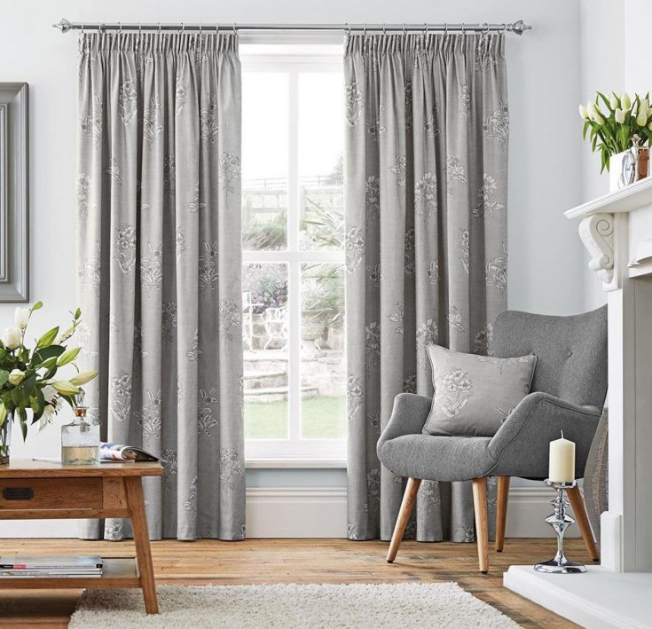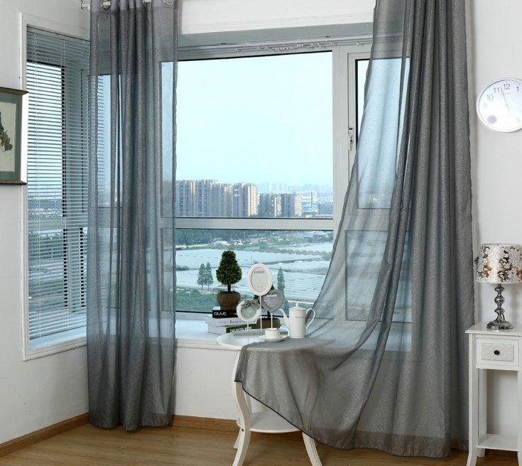 Curtains in gray tones are distinguished by sophistication, elegance and respectability. The key advantage is the versatility of the product. You can perfectly add neutrality to the room, but not make it boring.
