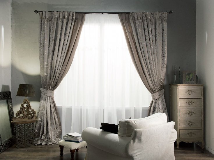 Gray curtains in the interior: the secrets of giving unobtrusive wealth and respectability