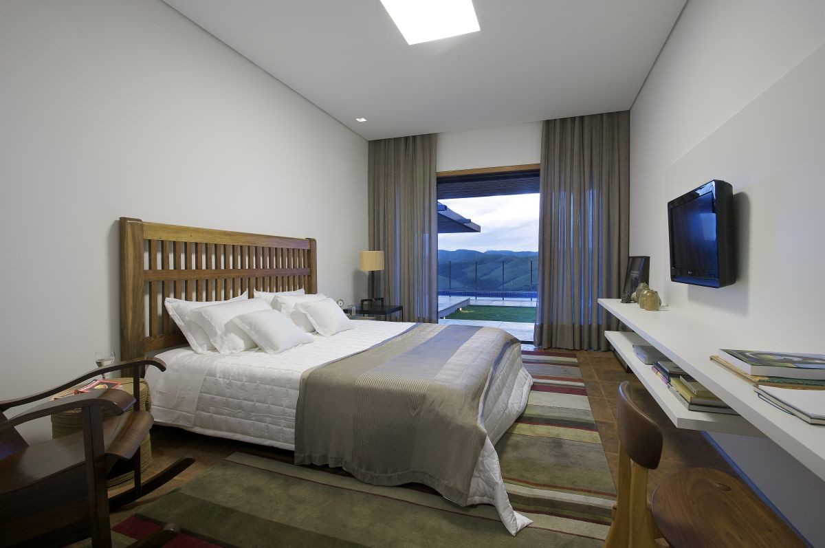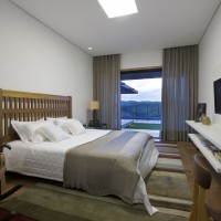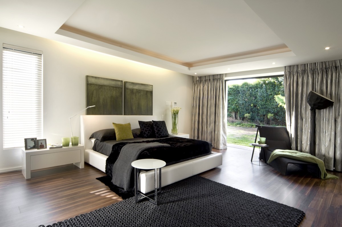 Very similar to hi-tech is minimalism. These styles are similar by expanding the space by minimizing indoor furniture and calm shades. There is no glass and metal in this style, so the room takes on a more familiar atmosphere. The furniture is minimalist made of wood and has a matte finish. Curtains for the bedroom, when using minimalism, you should choose calm colors that are used in the overall interior so that they do not catch the eye, but fit as much as possible into the overall picture.