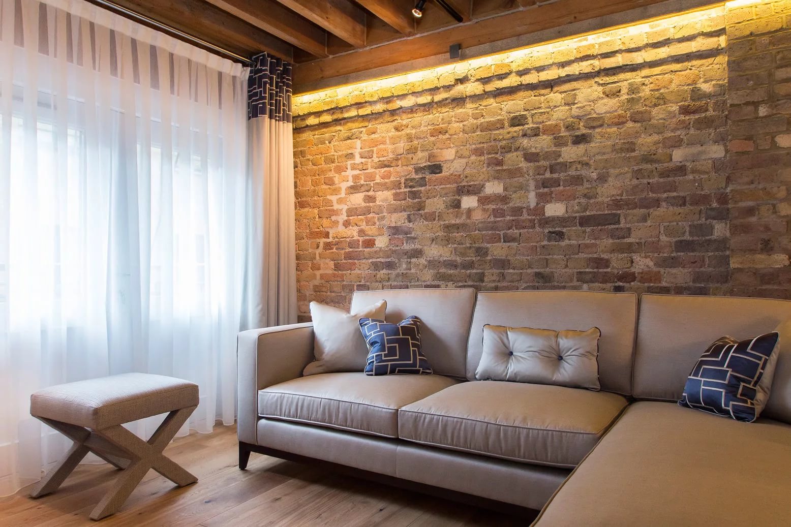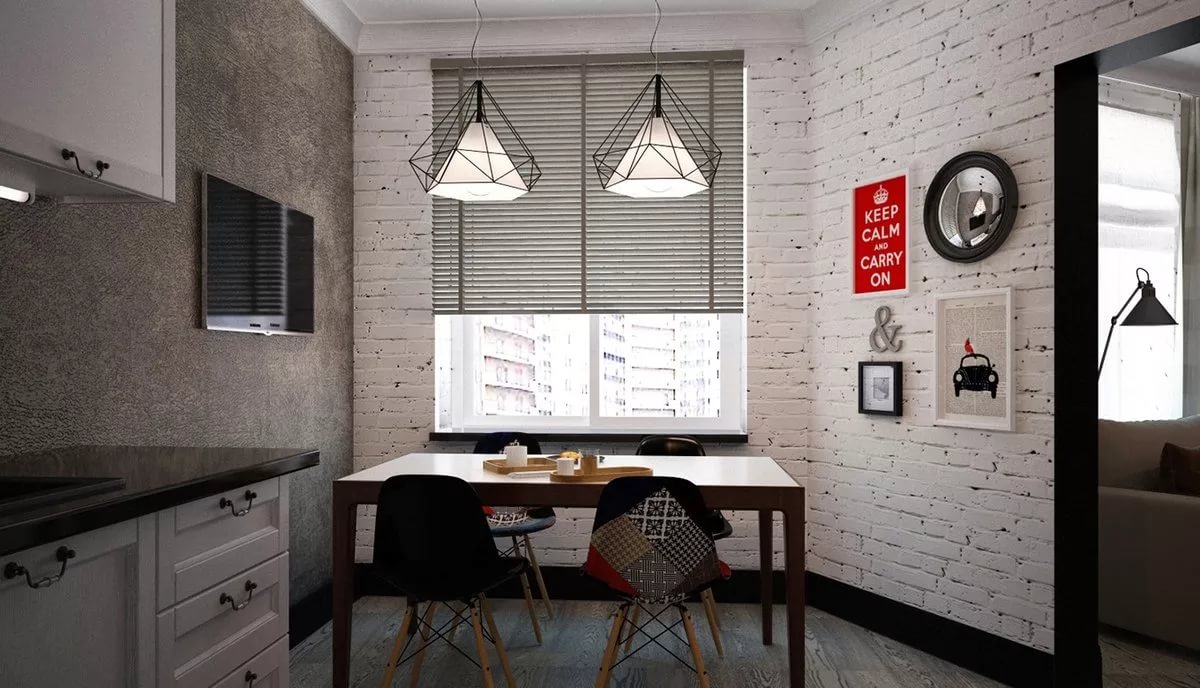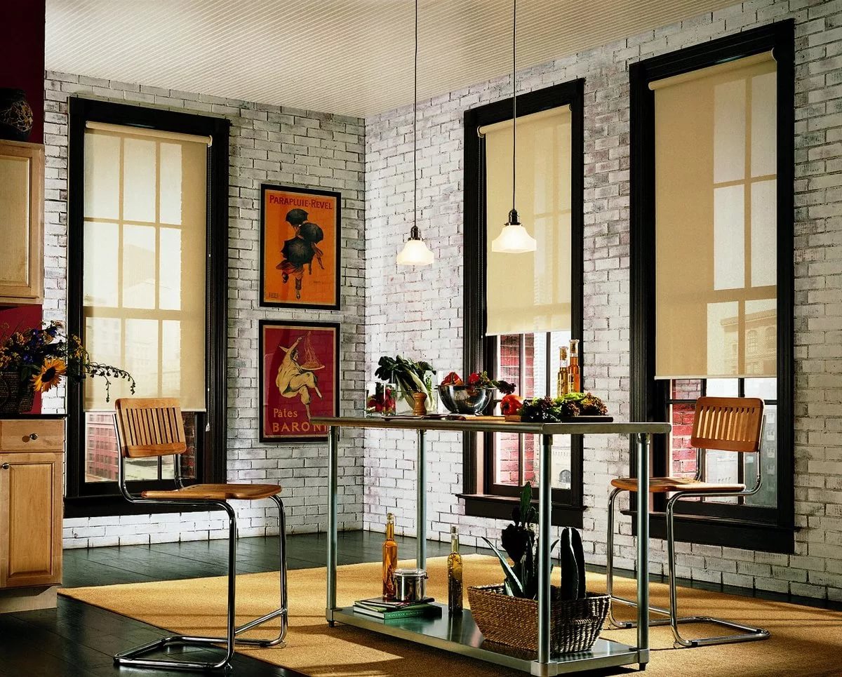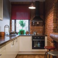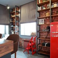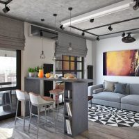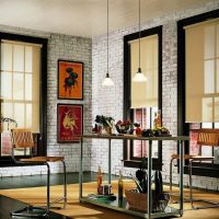 The design is similar to rolled. Roman curtains in the interior in the loft style is a unique combination of laconicism and elegance.