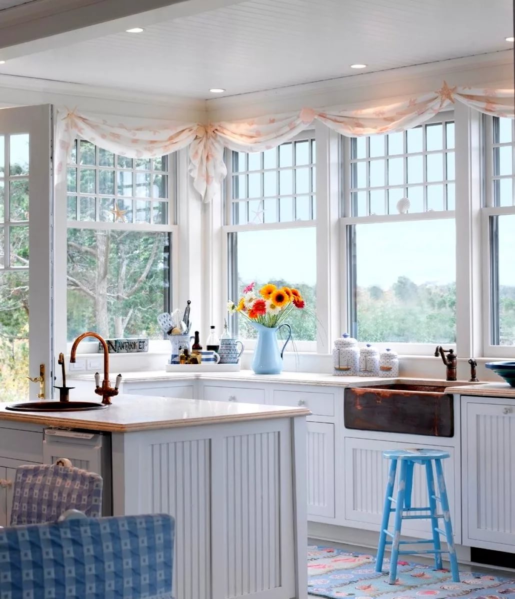 For a large kitchen, you should choose bright curtains