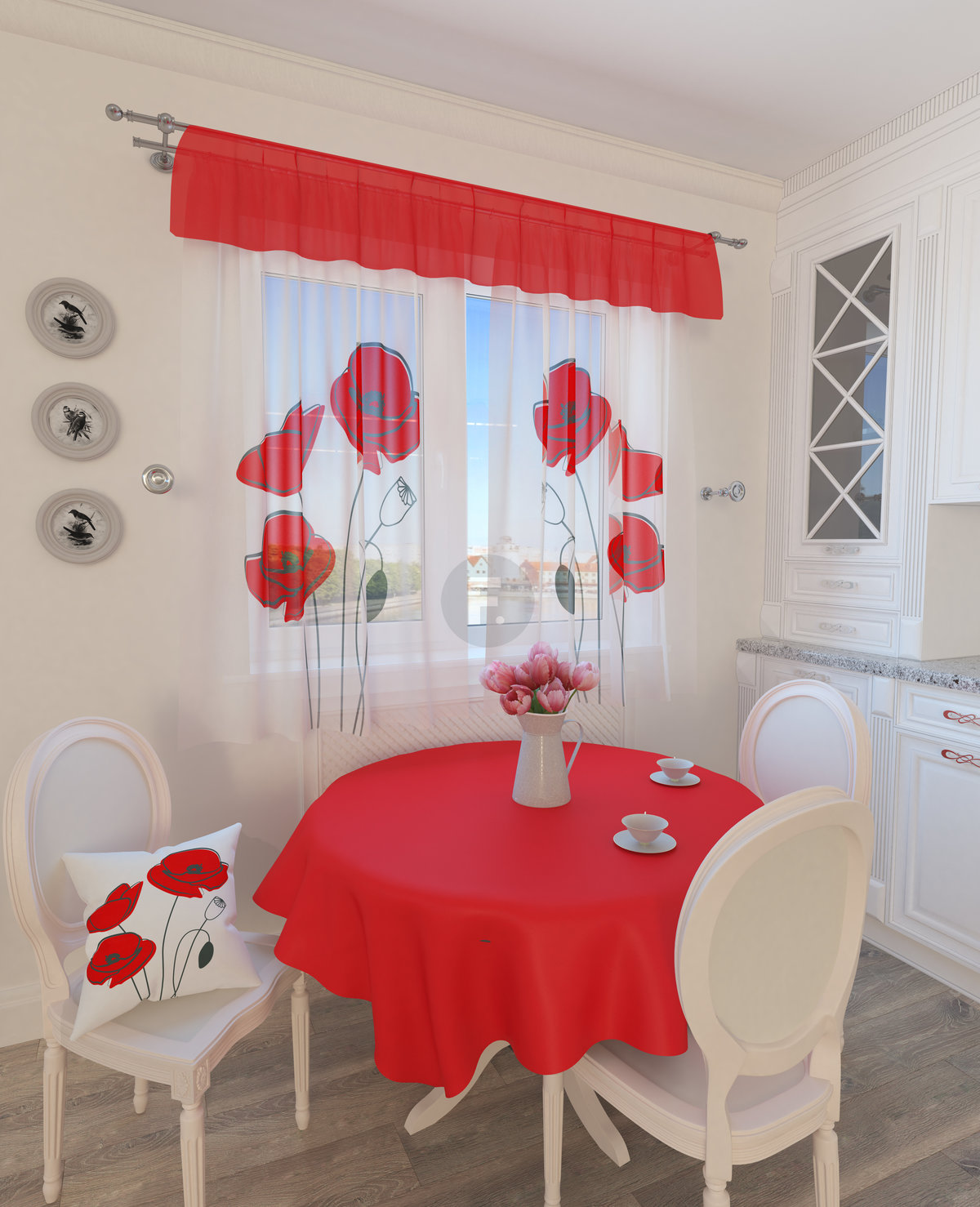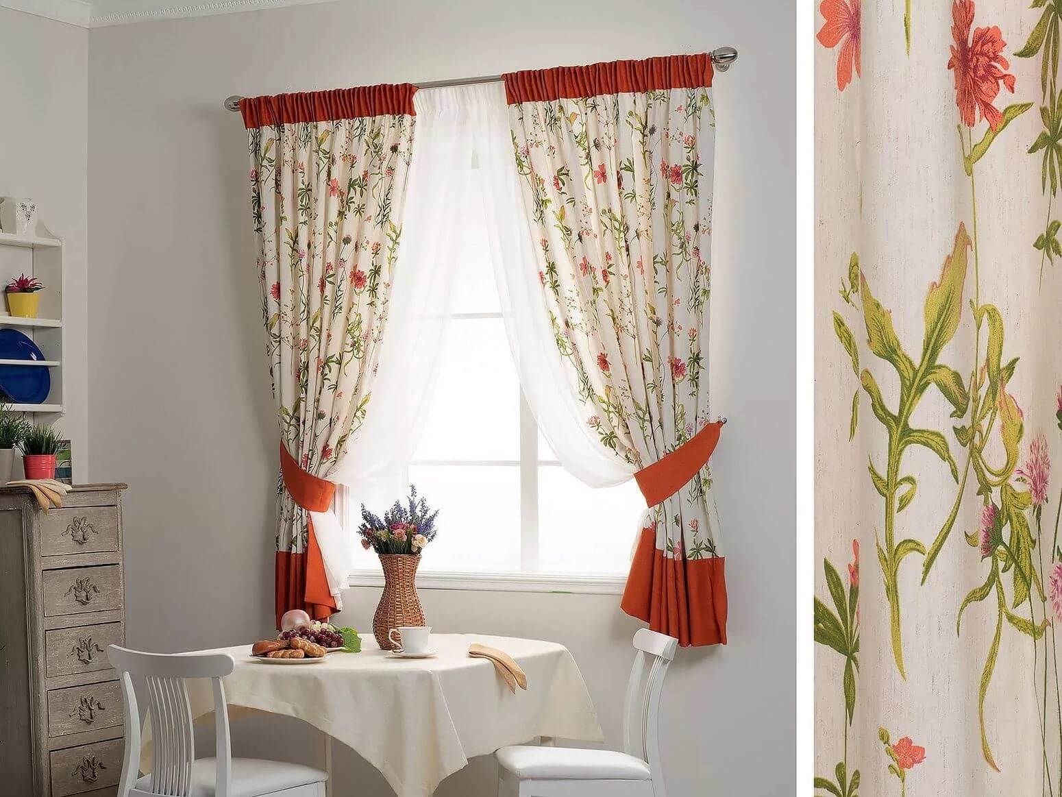 A provincial option that perfectly complements modern cuisine. The curtain rod is located in the upper part, so even when closed, the curtains will not prevent sunlight from entering.