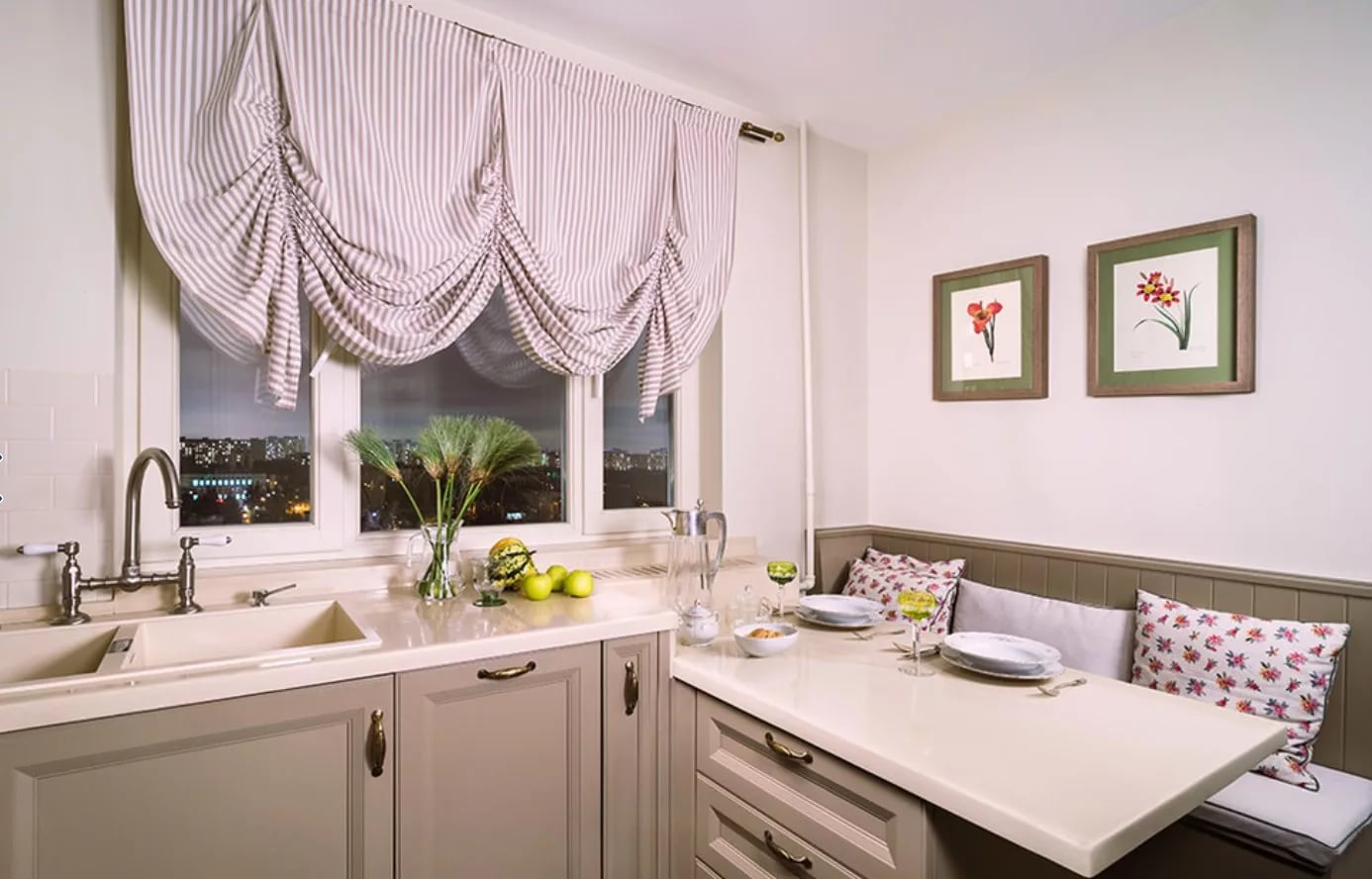 Roman curtains in the kitchen in the style of Provence