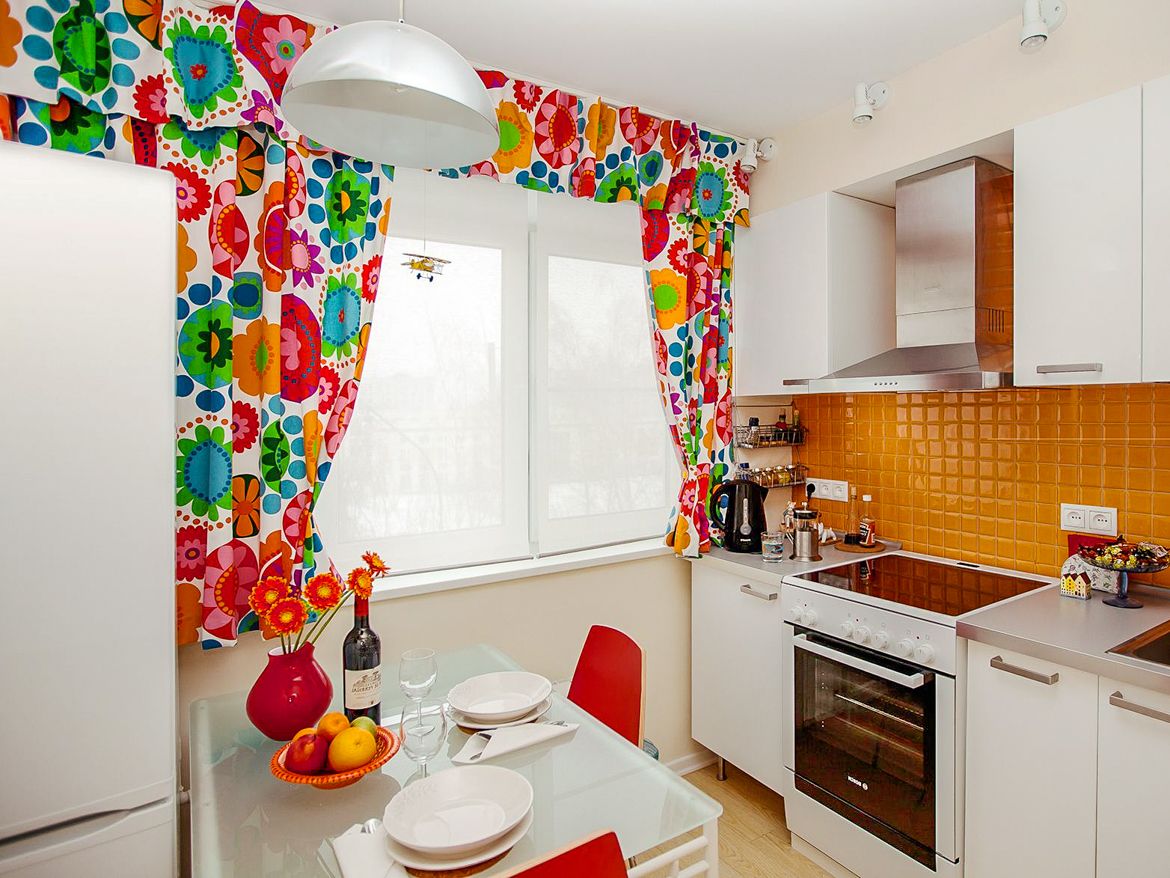 3) For a small kitchen, curtains of light color are suitable.