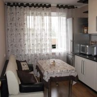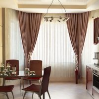 Recently, studio apartments have become very popular. For example, in the living room, curtains can be made ceremonial, and in the kitchen simpler, because water droplets and grease cannot be avoided in any case. Designers allow the use of different styles of curtains, but the color scheme should be used alone. You can use the same material for decoration in the kitchen.