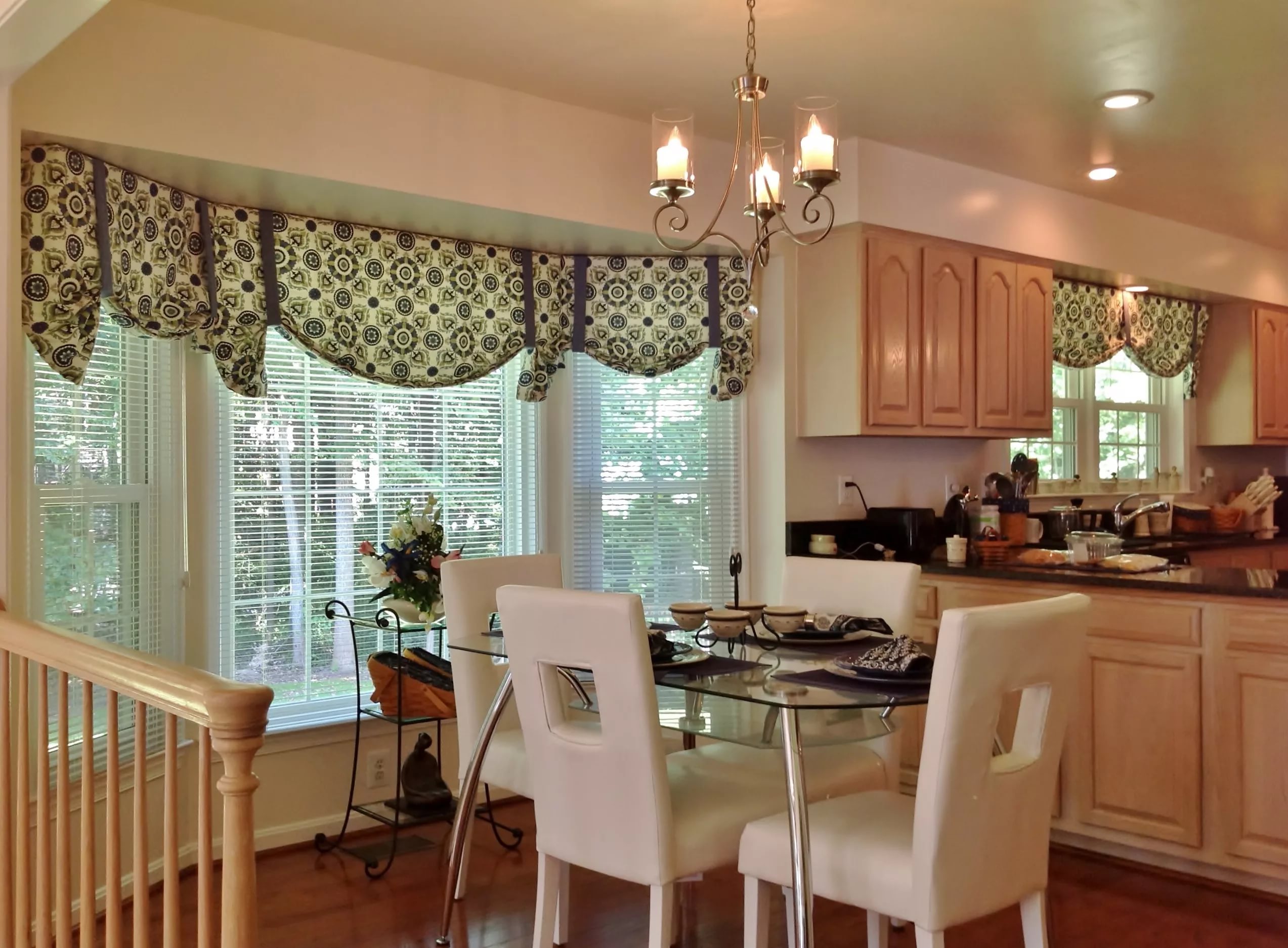 Cascading curtains in the kitchen in a classic style