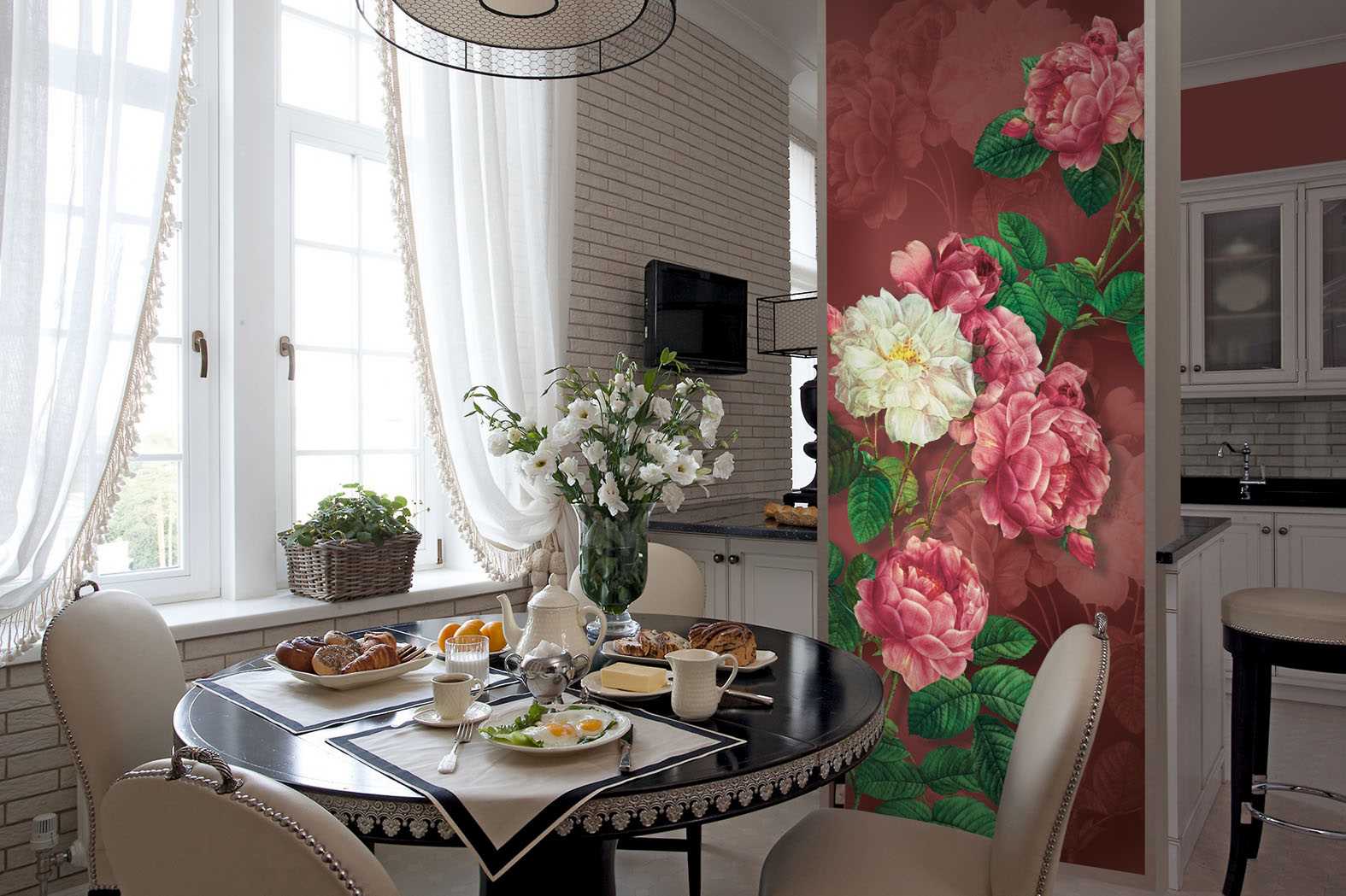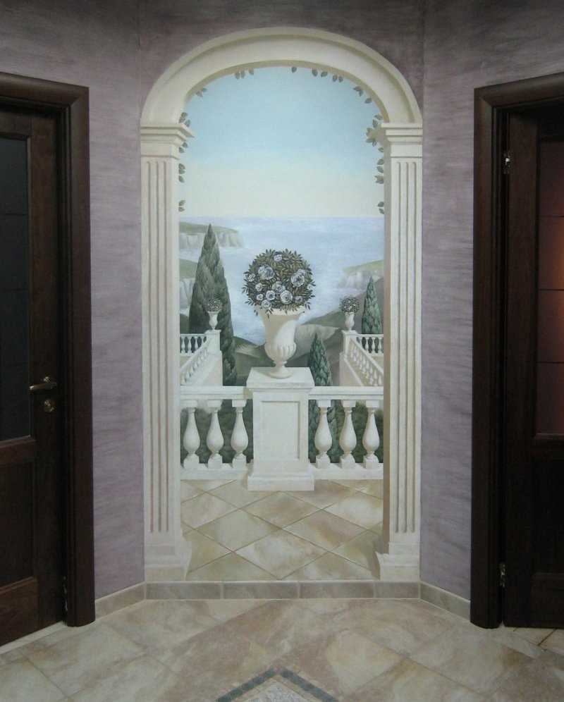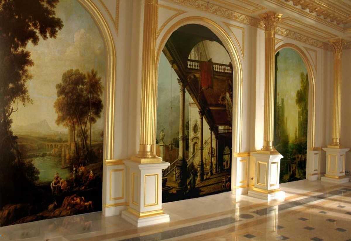 - for classical or Victorian style, ancient columns with sea views, images of a blooming garden will harmoniously fit into the interior;