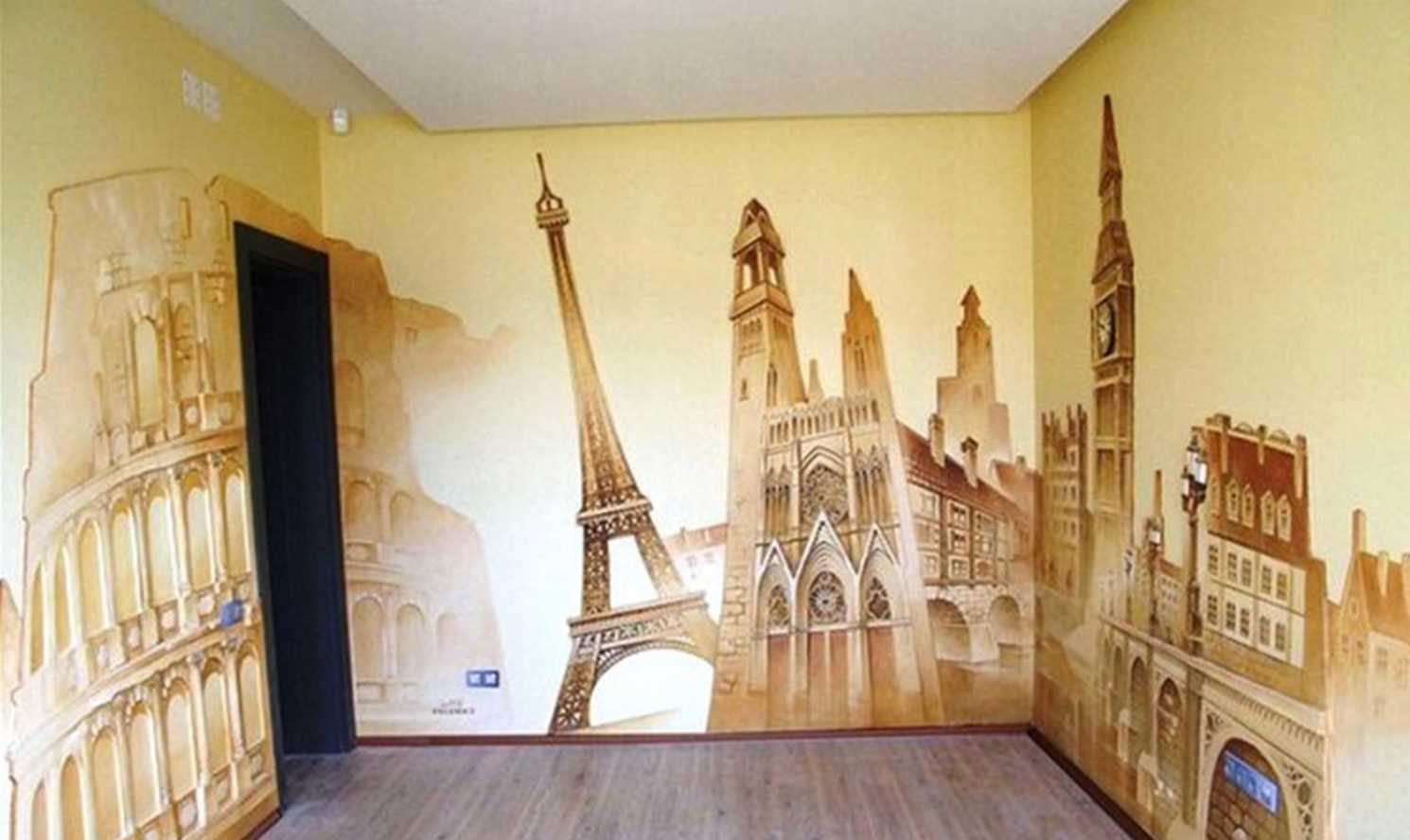 An important rule of painting walls in the interior is compliance with the measure. A saturation of the room with this kind of decor will turn a cozy corner into a museum of fine art. Another important nuance is the correct choice of pattern for decorating the apartment. So, for example, the image of cartoon characters will not look harmoniously in the living room, decorated in a classic style.