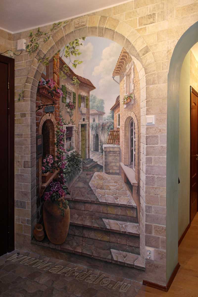 Art painting of walls in the interior is a central element of decor. She catches the eye, depending on the viewing angle, lighting, can change, playing with new colors.