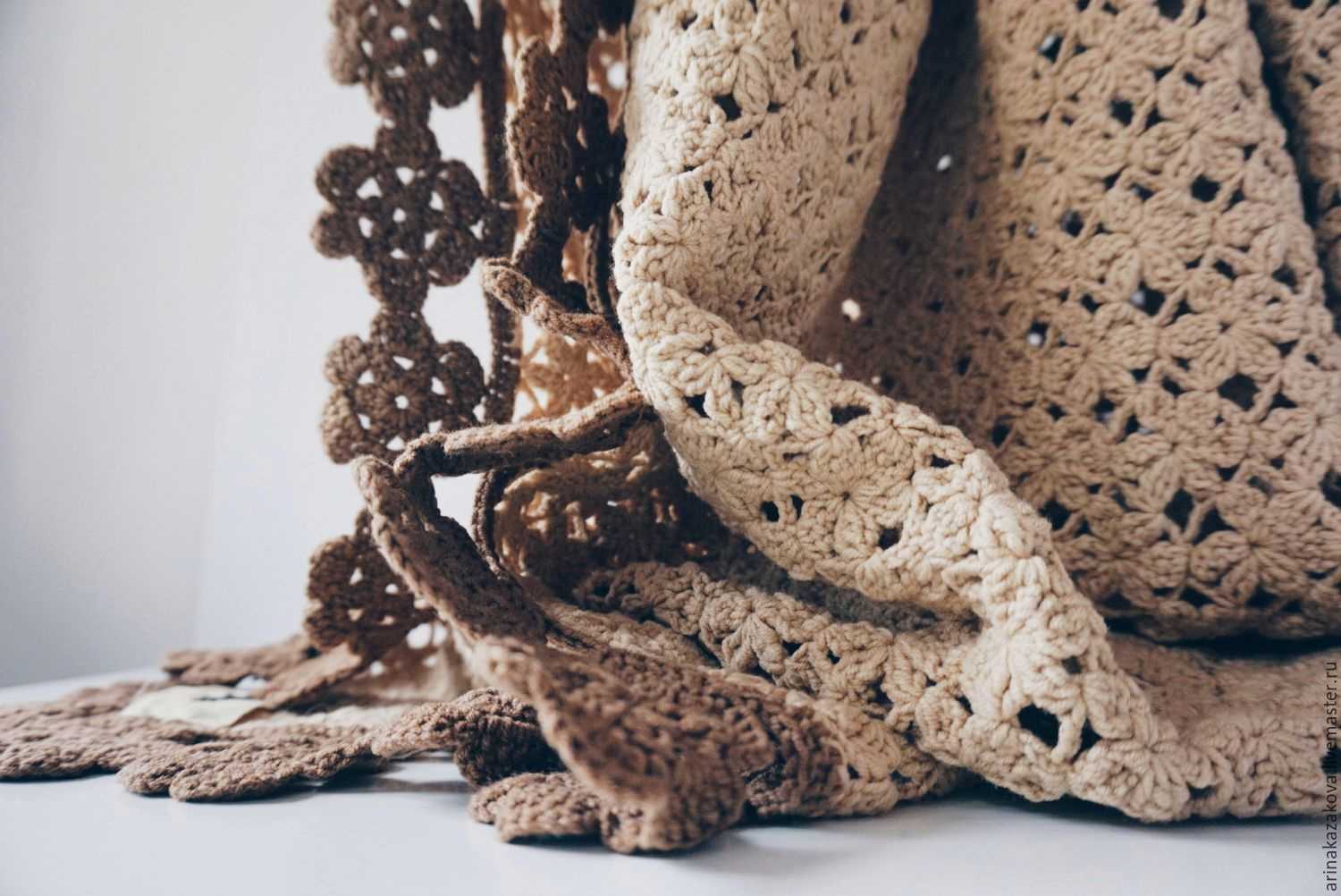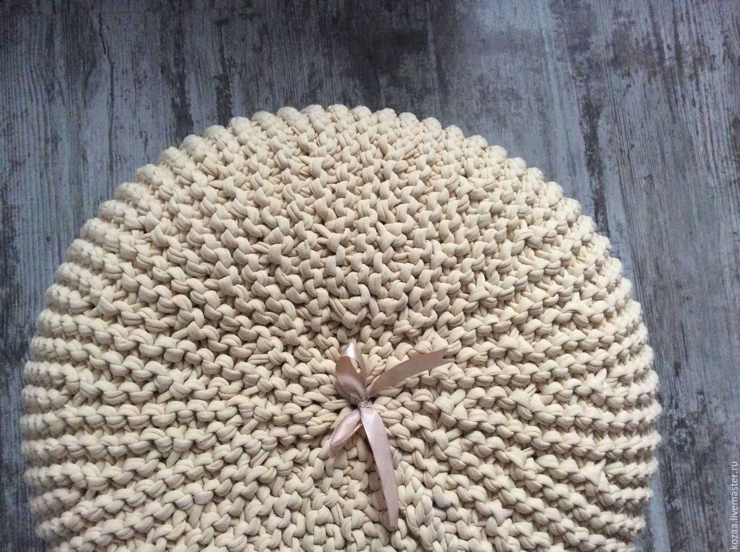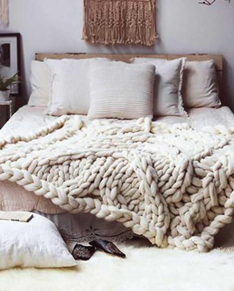 Hook and thick yarn, ideas from designers allow you to create unusual furniture, pillows, carpets. Modern knitting techniques have come up with the use of hands instead of a hook - using the yubiami technique, you can do things of especially large knitting - plaids and bedspreads.