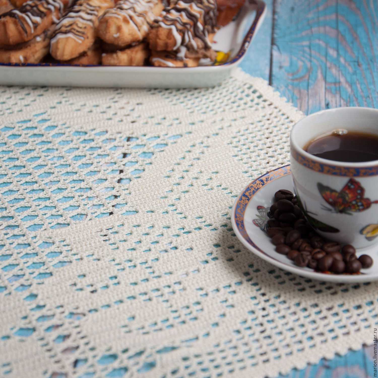 An openwork cover can decorate a photo album with old photographs (lace of the color of unbleached linen is suitable) or the first photographs of the baby. The tenderness that lace attaches to any subject creates a special atmosphere of romance and peace. Therefore, in modern interiors such things look somewhat alien.