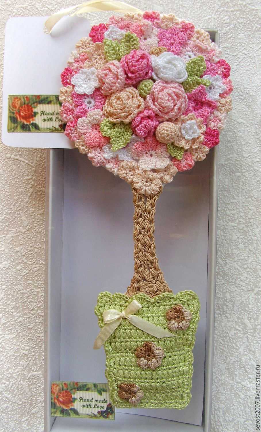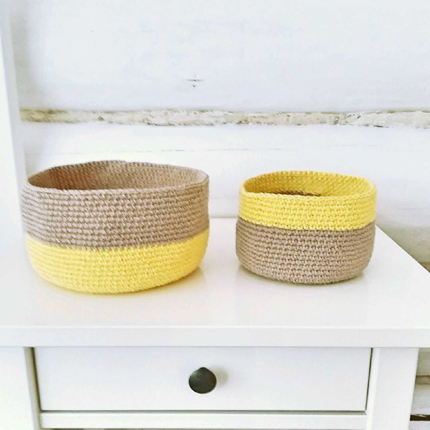 It will be interesting to look in the interior of the same shape, but of different colors and sizes, hanging or table knitted flowerpots for indoor flowers. They will become a bright color accent, enliven the interior even in a monochrome room, give dynamism and emphasize modernity.