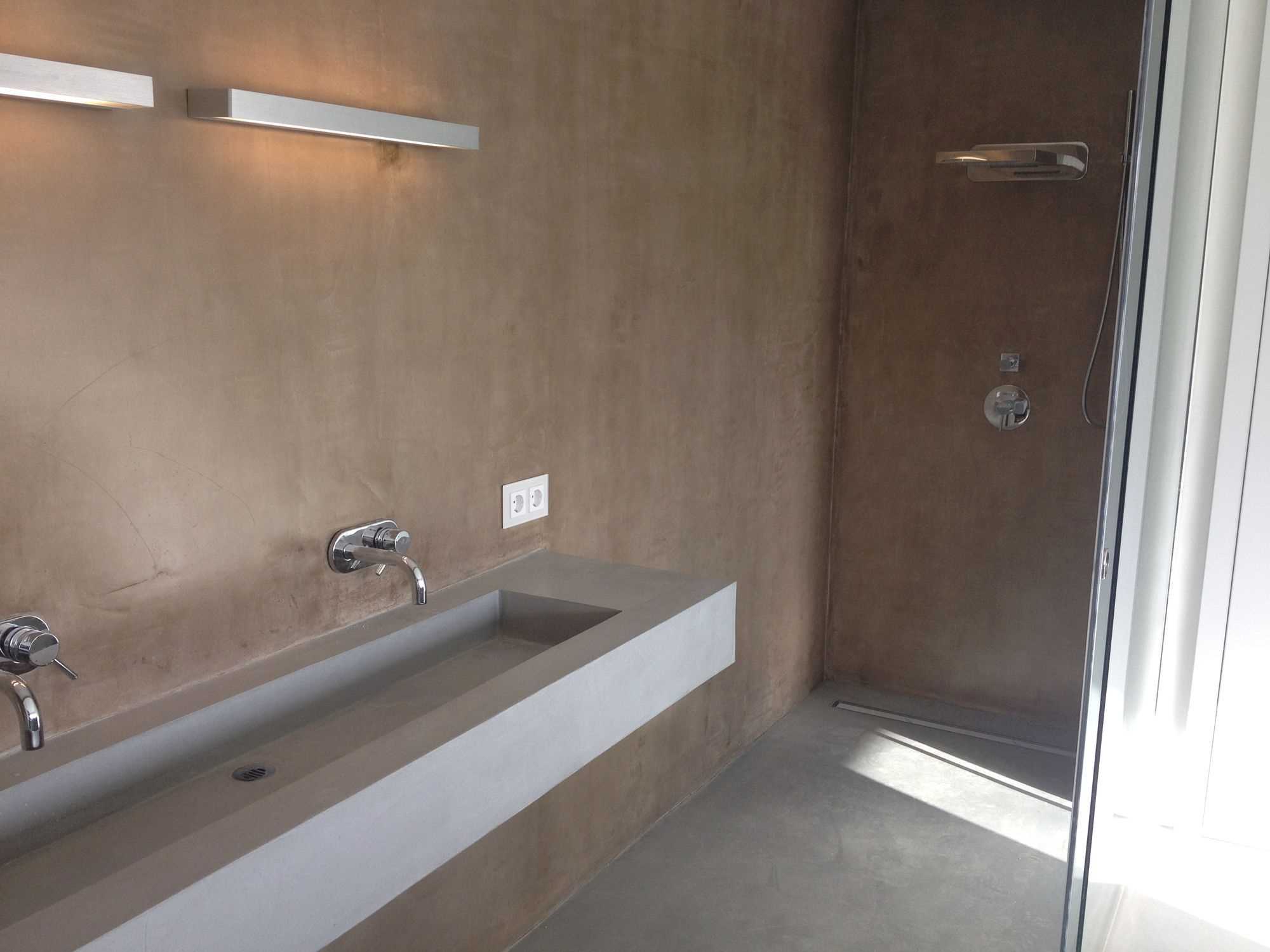 - Application by technology "smooth concrete". First you need to prepare the surface for applying the solution. This method will require a steel trowel, sponge and grinder with a suitable nozzle for concrete. The first stage includes the application of decorative plaster in a fairly dense layer, with small strokes distributed in different directions. This is done to get a natural effect. After a day, the most convex parts must be wiped with sandpaper and, if desired, the walls are treated with the sharp part of the trowel to correct the resulting pattern. The finish layer involves stretching the plaster over the entire surface. It is very important that the layer is thin enough. Therefore, the composition is recommended to be slightly diluted with water (not more than 2% of the amount of solution). After 12 hours, polishing is carried out and, if wall tinting is required. The final stage: the surface is processed by a grinder and wax.