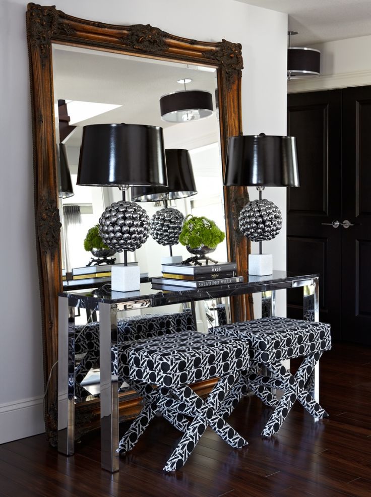 Using such furniture, take care of the elements that it will display. Place an interesting vase or other element against a table or table that looks unusual in reflection.