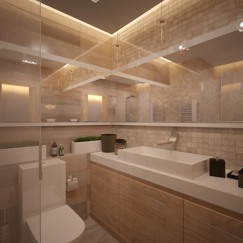 A panel on the entire ceiling will create a feeling of fullness in the room, visually increase the space, and with the skillful use of ceiling lights it will play an important role in shaping the lighting. When the lighting fixtures are correctly positioned, the mirrors will scatter light and also display lights, creating even more light.