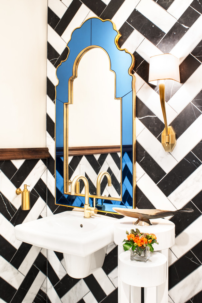 Marble wall covering with mirror inserts - a true modern
