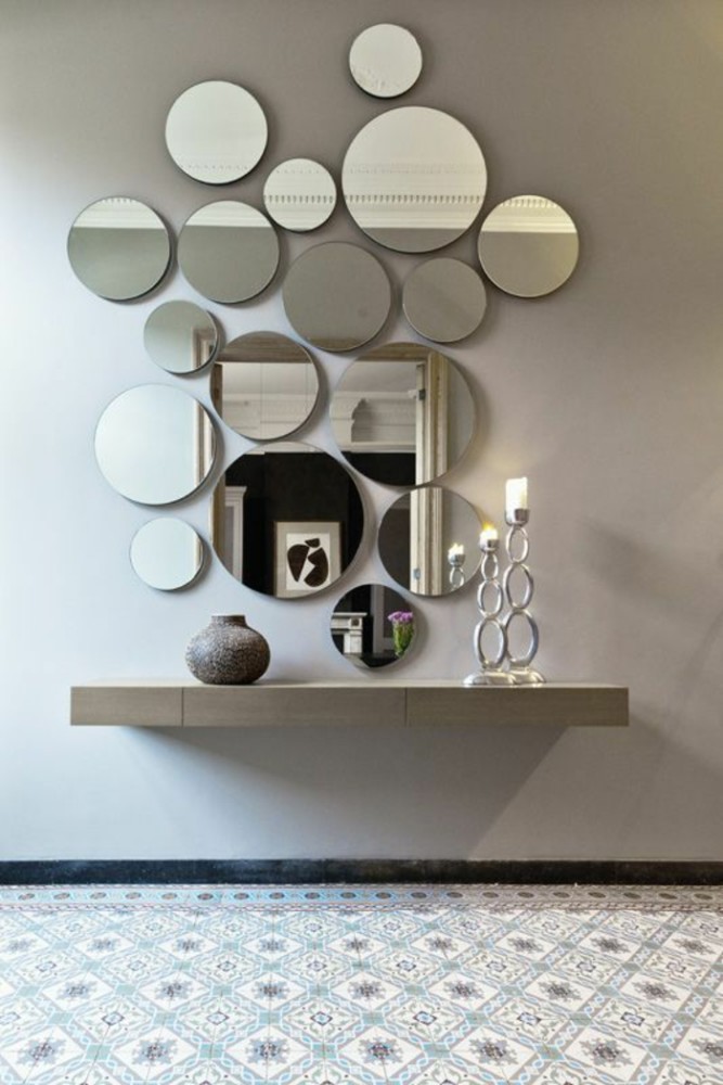 The original composition of mirrors of various shapes will be an excellent decoration of the wall
