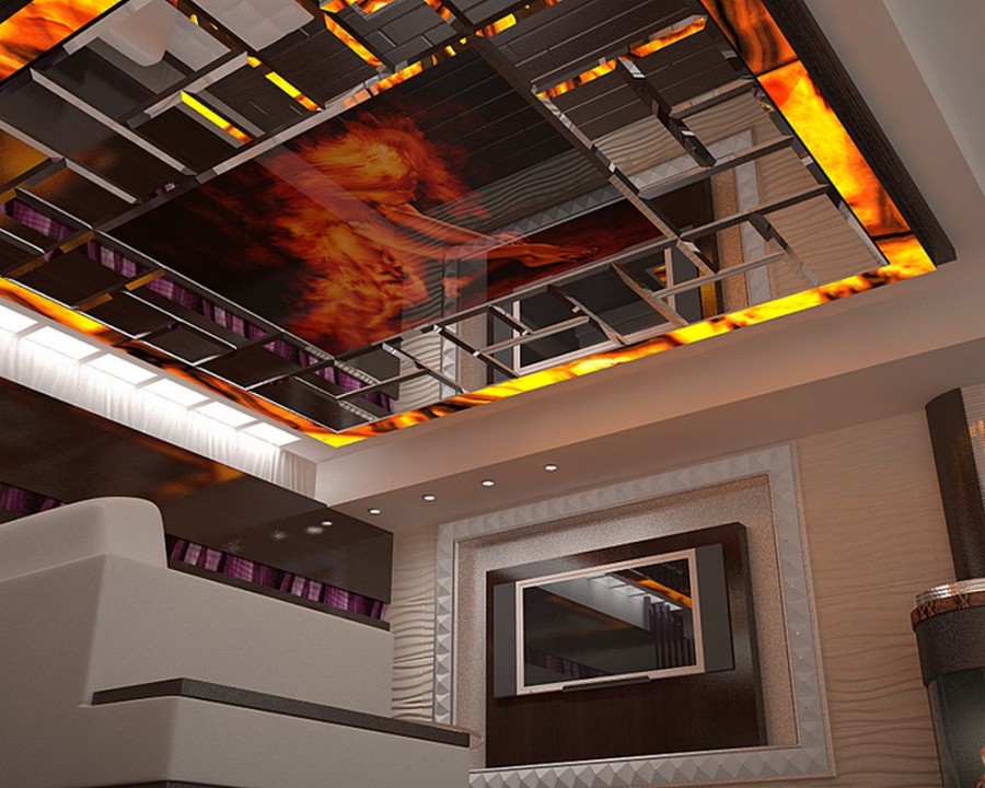 | Bedroom | Placement on the ceiling or opposite the bed should be excluded. For a modern interior, it’s enough to use the area behind the head or the front of the room. |