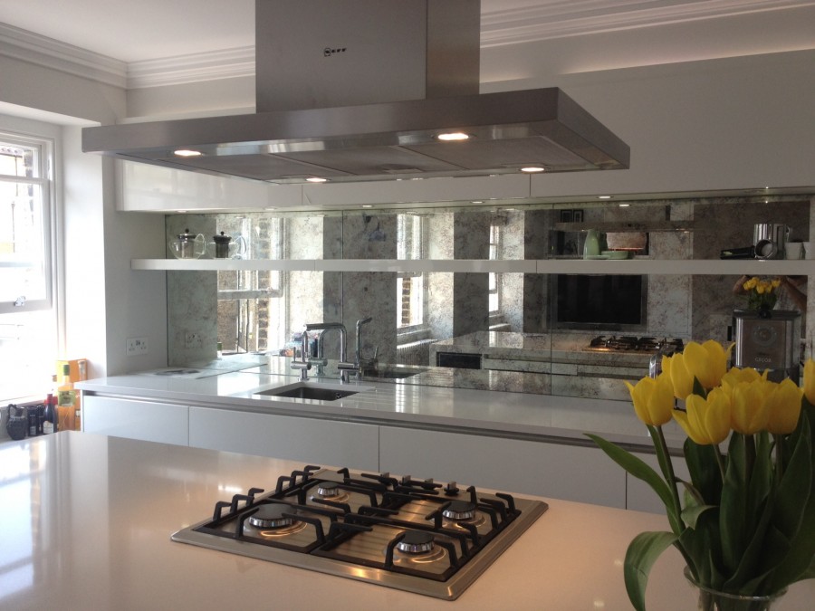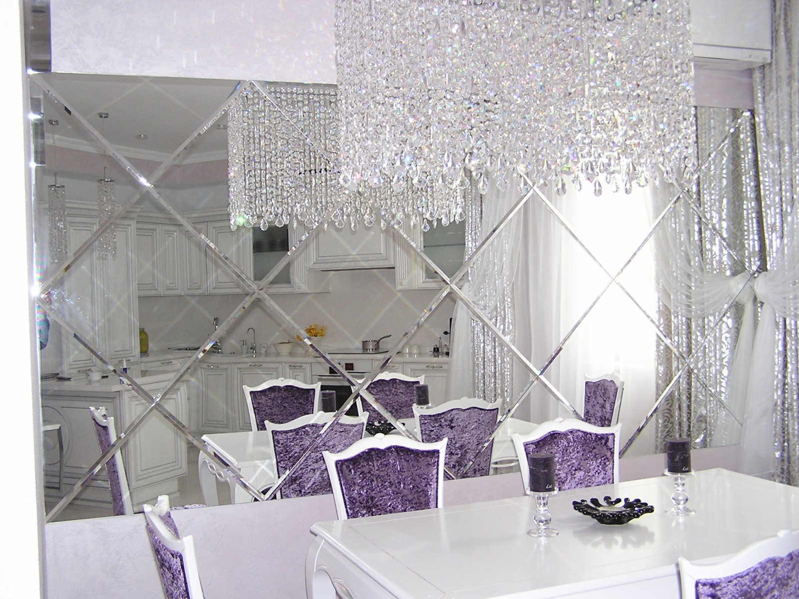 | Kitchen | Used mosaic or panels. Suitable for dining room. The working area of the kitchen is a difficult area. A high degree of contamination will adversely affect the reflective surface. You need to spend more time caring for the product. |