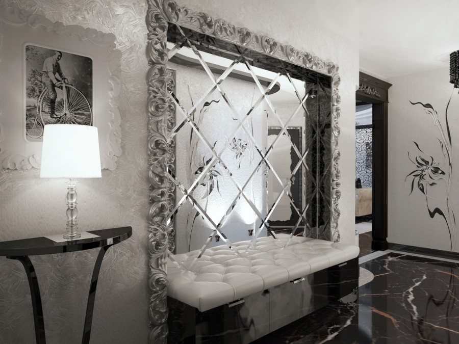 | Hallway | Mirrors in this part of the house are placed for convenience. If the territory is small, the reception will make it better. It is recommended to trim the side walls with tiles. For narrow and long rooms, it is worth excluding the placement of elements near the far surface. |
