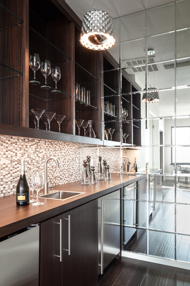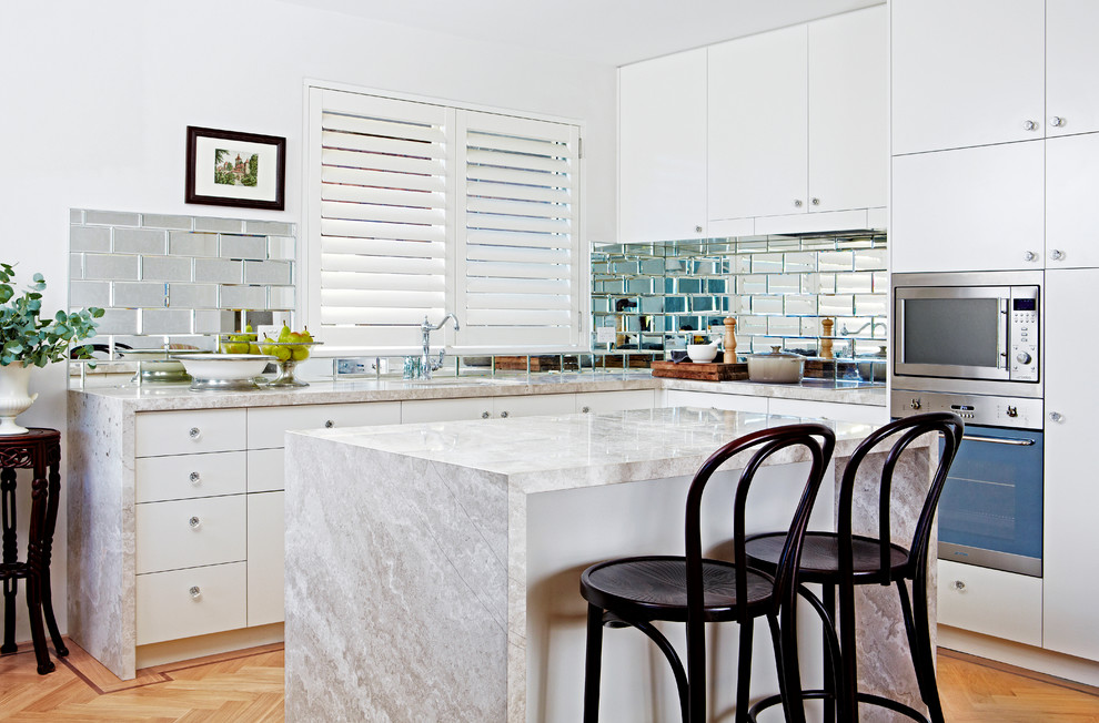 Mirror mosaic kitchen apron is perfect for decorating your kitchen in art deco style