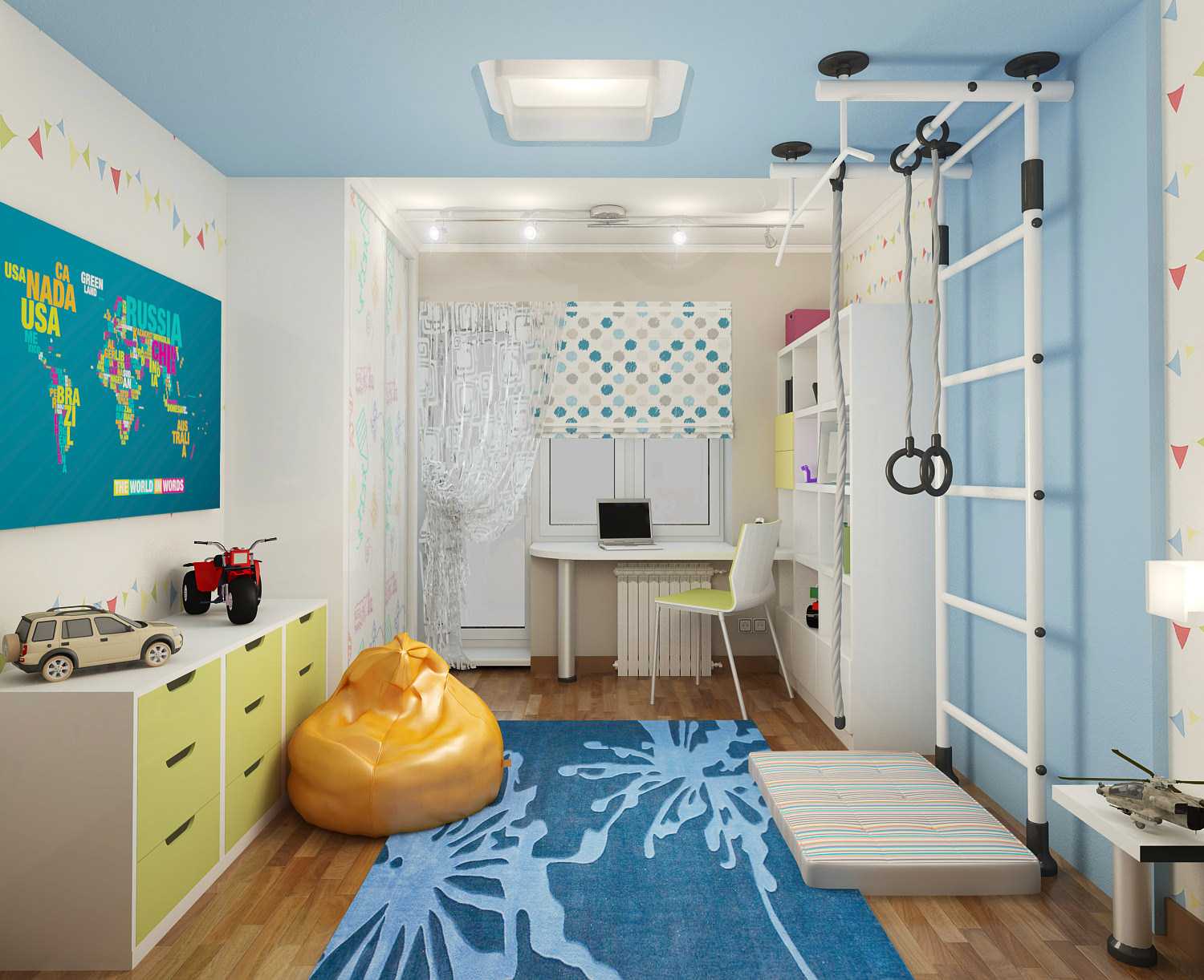 - Decor elements for the bedroom, you can choose bright blue, green or pink tones.