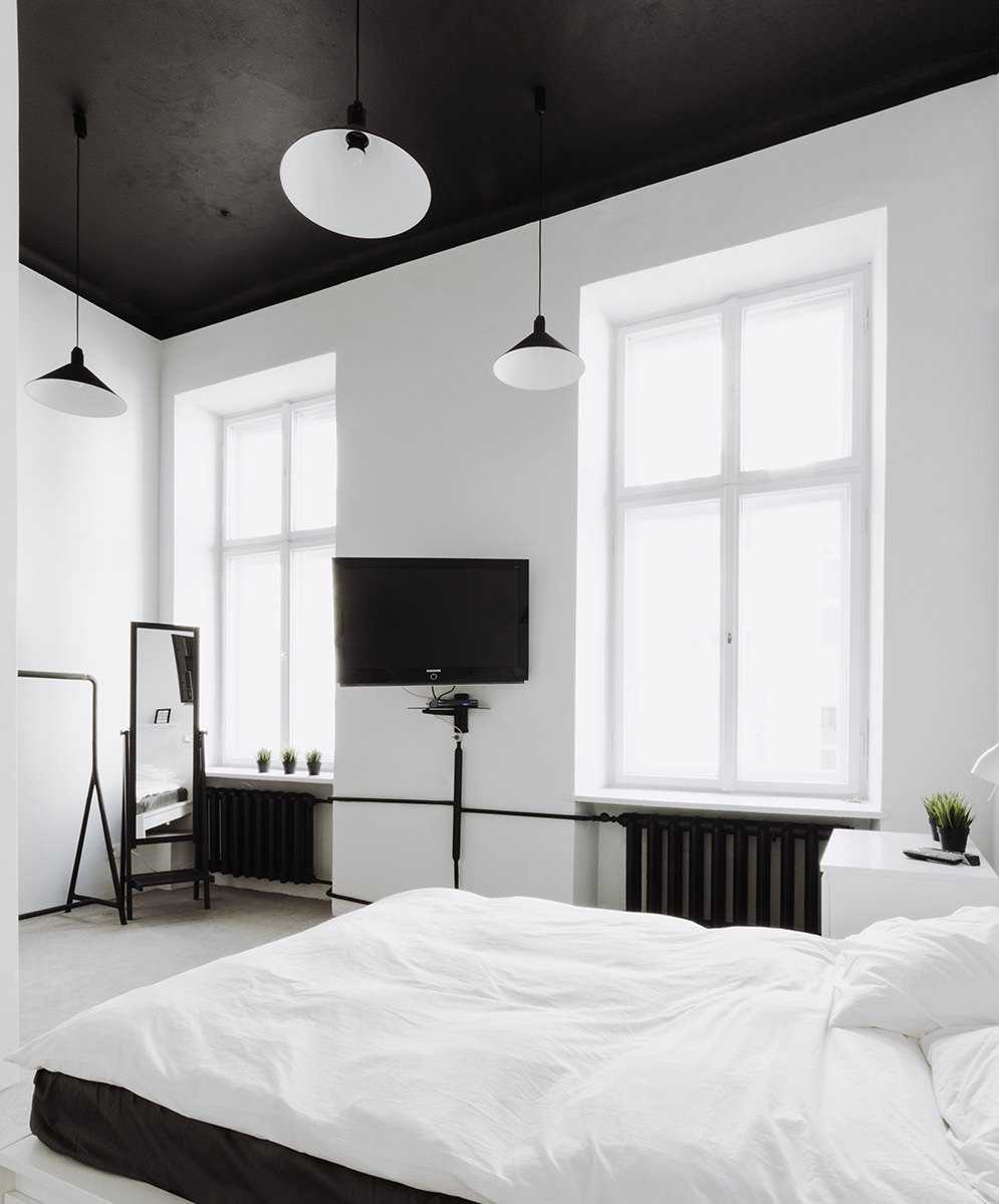 Design of a bedroom with white walls