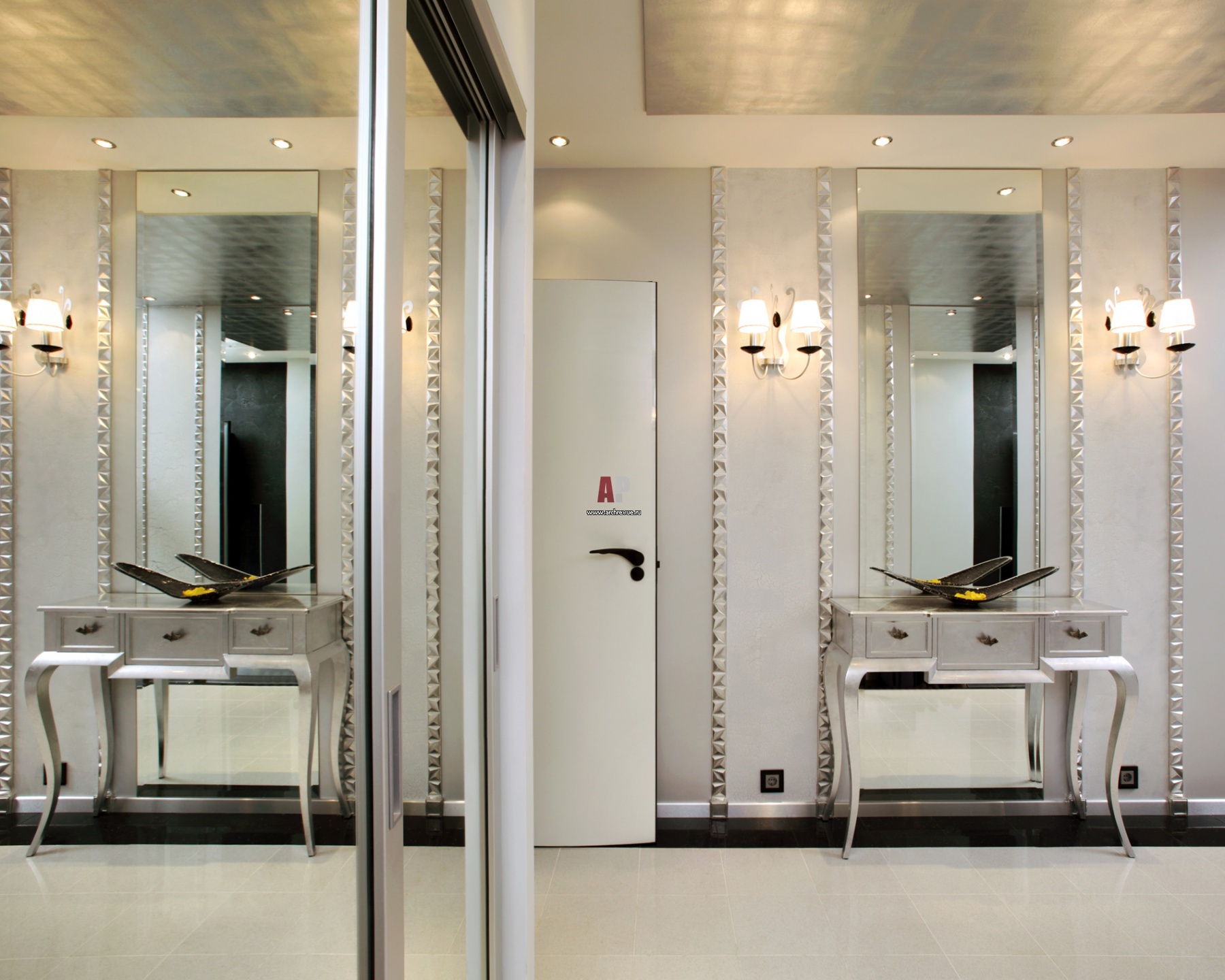 Varnish, metal, polished surfaces, gloss, an abundance of mirrors - characteristic features for the interior of Art Deco. Mirrors - in elegant expensive frames, tiles, furniture with mirror elements - all this creates an illusion, a game of reflections, the rays of the sun, which are reflected in the mirrors.