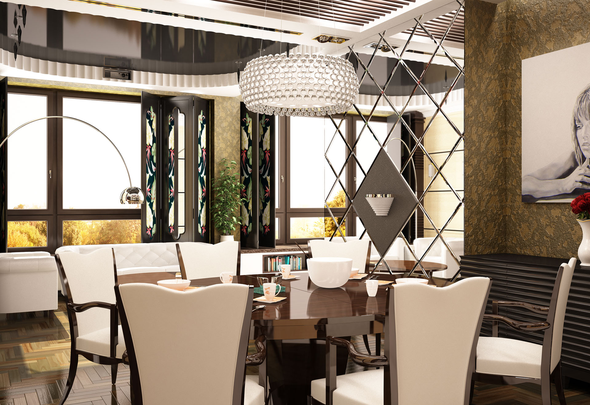 Bright room in art deco style
