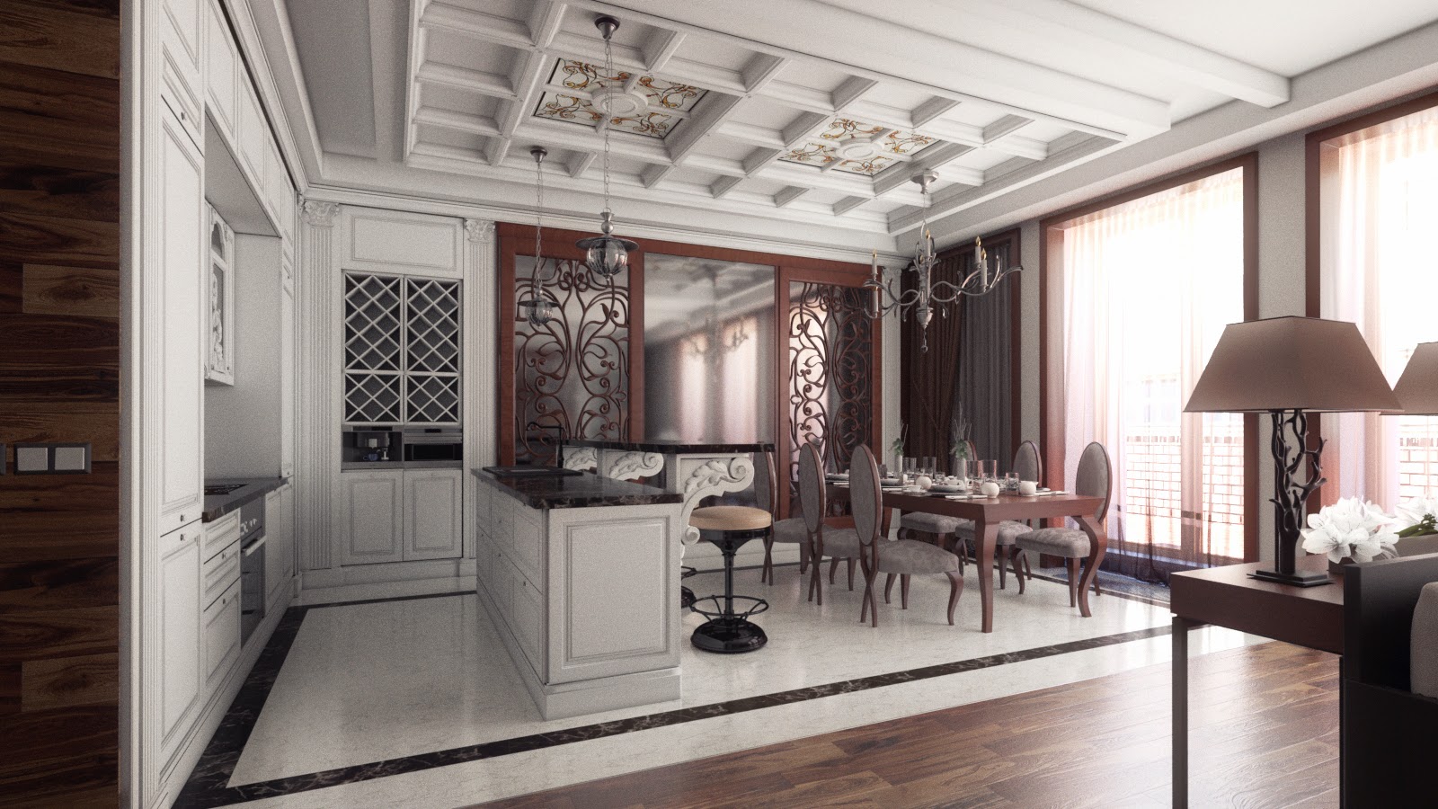 Bright large room in the style of Art Deco