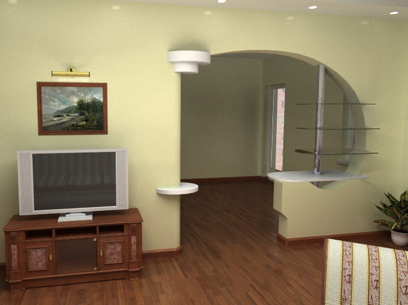 - Arches in a modern style are suitable for small rooms with low ceilings. The arch of this design is smooth, with a truncated radius, which makes the room visually wider.